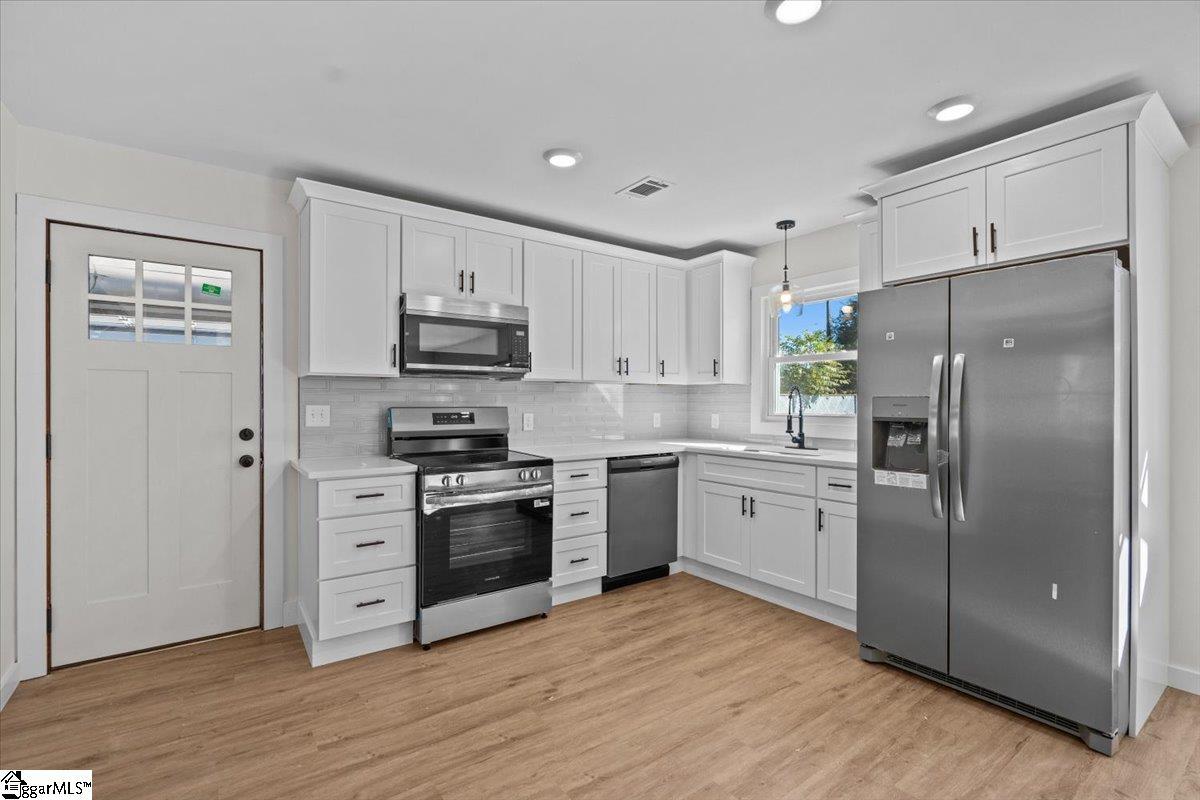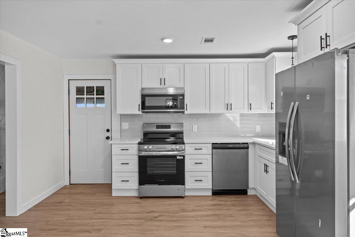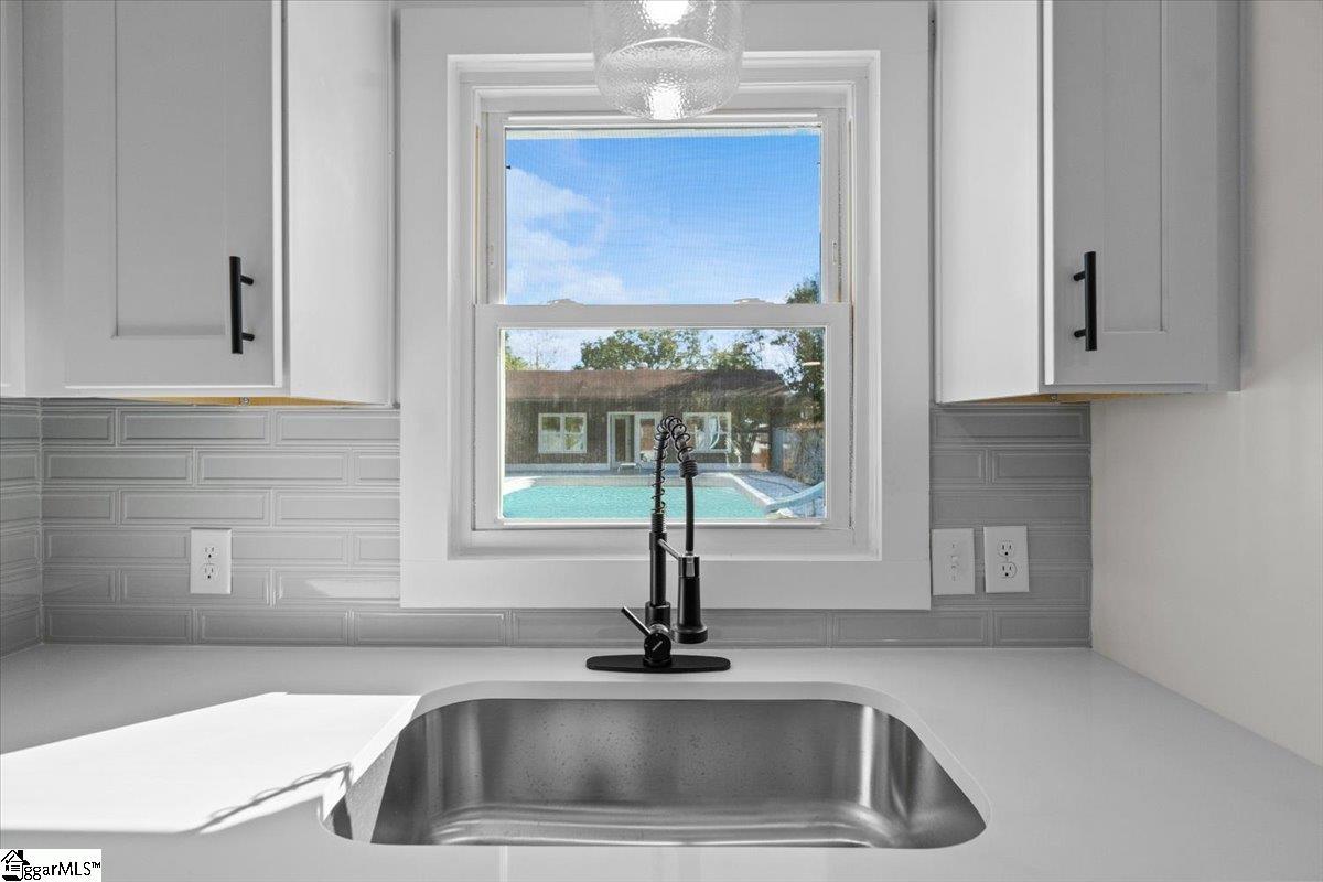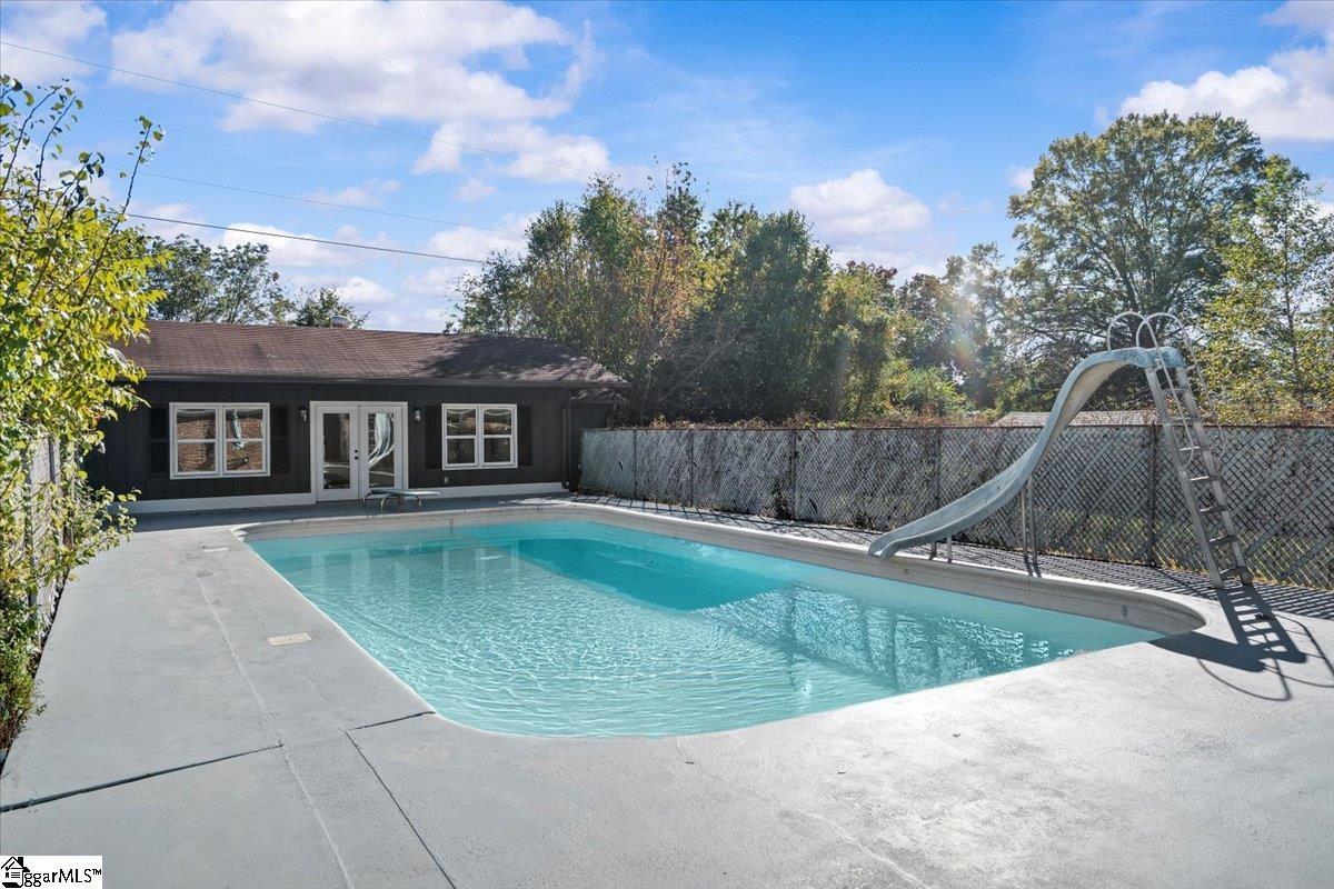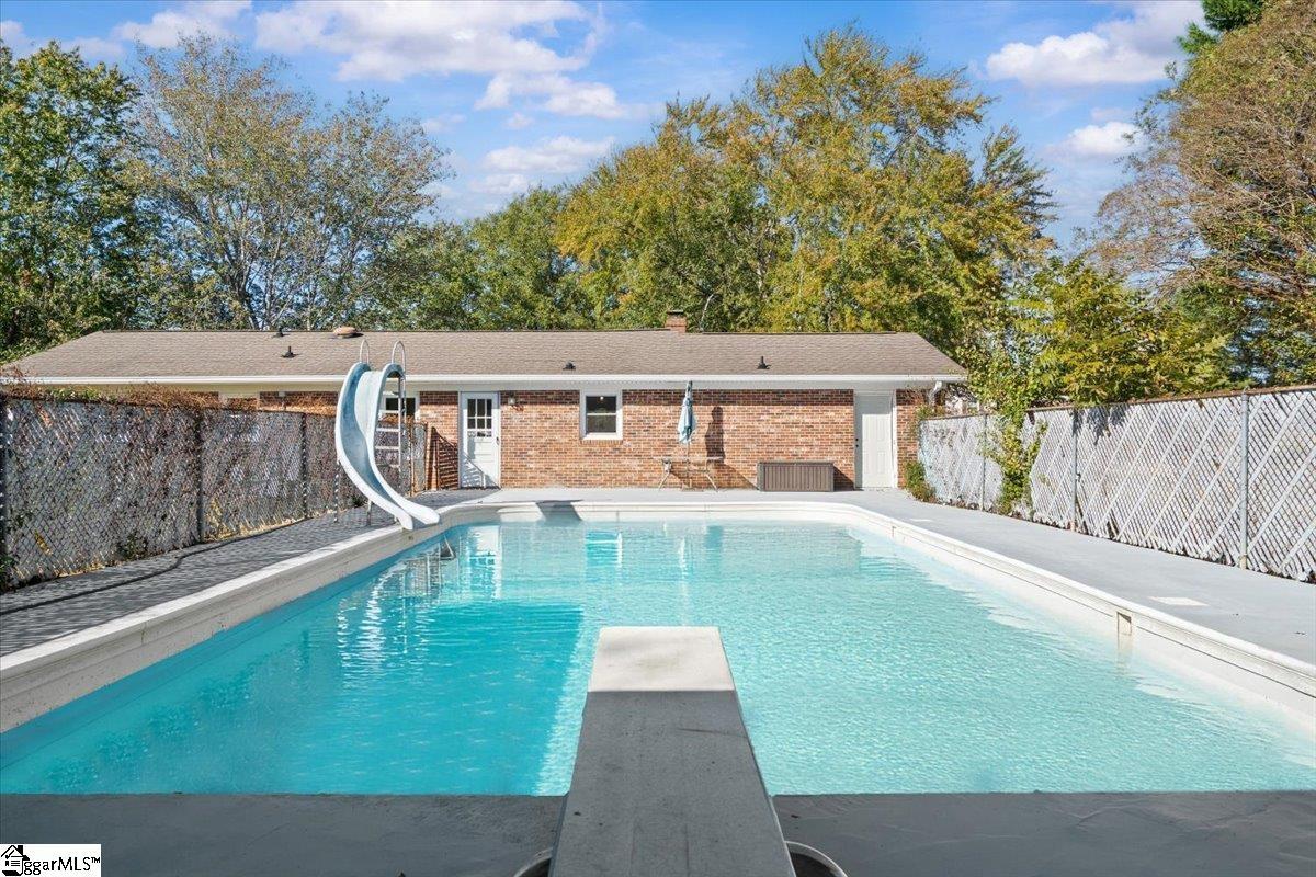 Welcome to this beautifully updated brick ranch on a large lot in Easley — complete with an in-ground pool and a separate pool house featuring a full kitchen, perfect for entertaining or guests. The main home offers a bright, open layout with new flooring, fresh paint, and a cozy living room fireplace accented with a wood mantel. The kitchen features white shaker cabinets, subway tile backsplash, stainless steel appliances, and a dining area that overlooks the backyard. The primary suite includes an updated ensuite bath, while the hall bath showcases elegant marble-style tile and modern black fixtures. Step outside to your private backyard retreat — the pool and slide are ready for summer fun, and the pool house provides extra living space with a full kitchen, making it ideal for gatherings or extended stays. The fireplace and pool are being sold “as is.” Located just minutes from downtown Easley and an easy drive to Greenville, this home offers comfort, flexibility, and space to enjoy year-round. Schedule your showing today — homes like this with a pool and guest suite are hard to find!