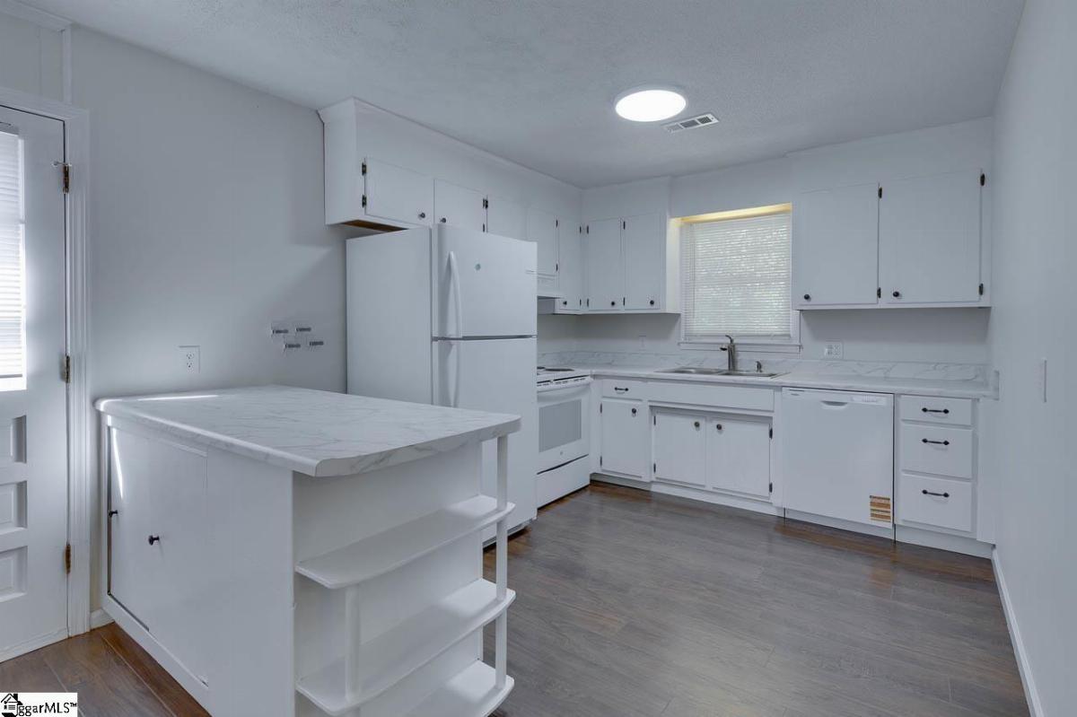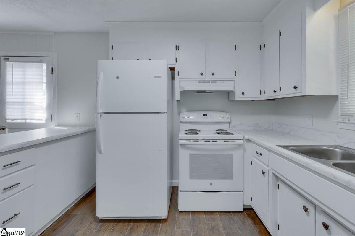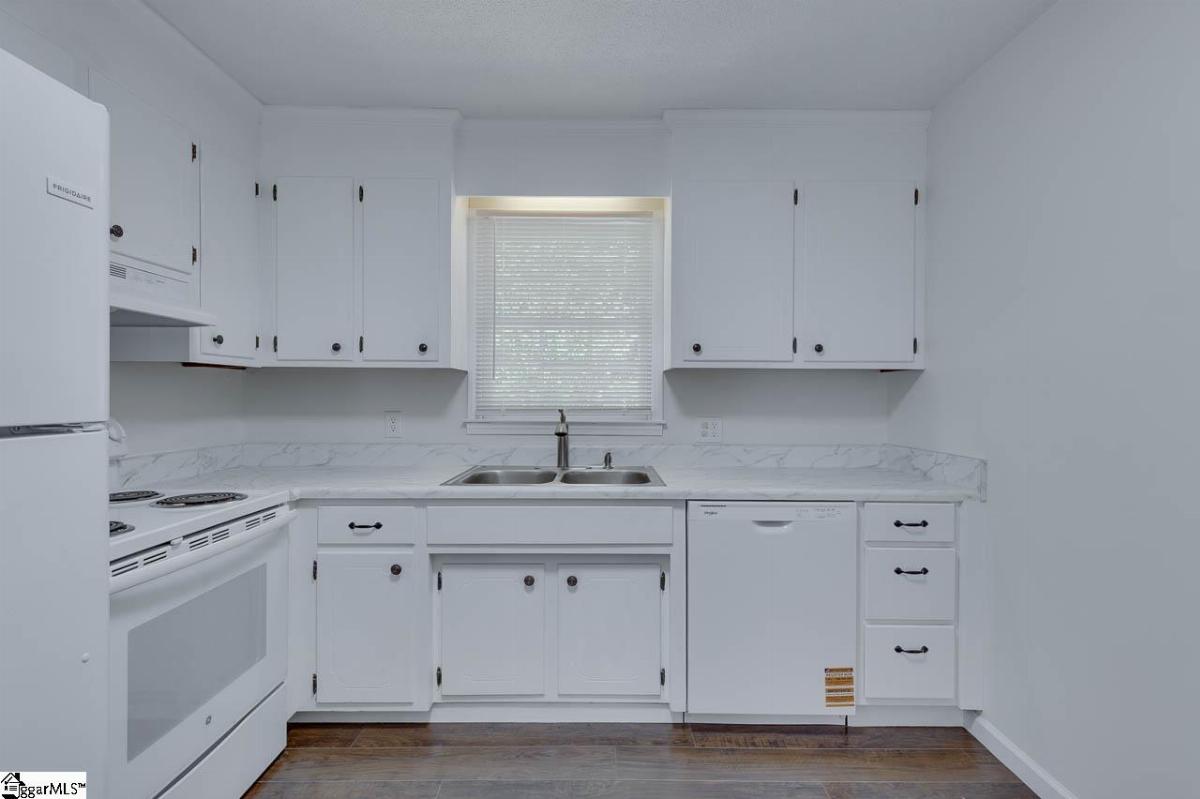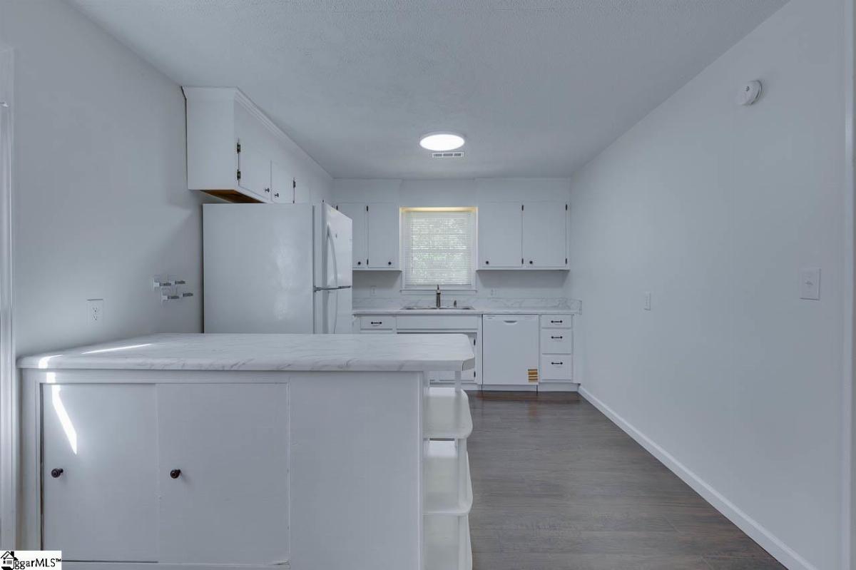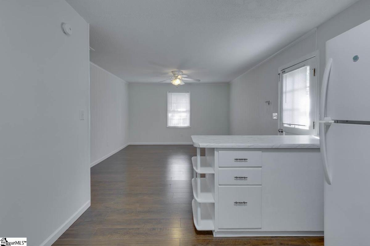 Welcome to 419 Rollingwood Dr, a 3-bedroom, 1.5-bathroom all-brick ranch in a quiet, established neighborhood, just minutes from downtown Easley, SC. Situated on over a half-acre lot, this home has ample space for outdoor activities and has no HOA restrictions. The interior features neutral painted walls and dark laminate floors throughout the whole house. The good-sized living room provides a comfortable space for relaxation or gatherings. The kitchen and dining room are open to each other, offering flexible options for meals, entertaining, or daily use. The three bedrooms provide sufficient space for family, guests, or a home office, and the 1.5 bathrooms include updated features. The front yard includes several mature trees, adding shade and character. The backyard faces woods, providing enhanced privacy for outdoor activities. Located near Easley’s downtown shops, dining, and amenities, this all one level home is ready for you. Schedule a showing to view this home today!