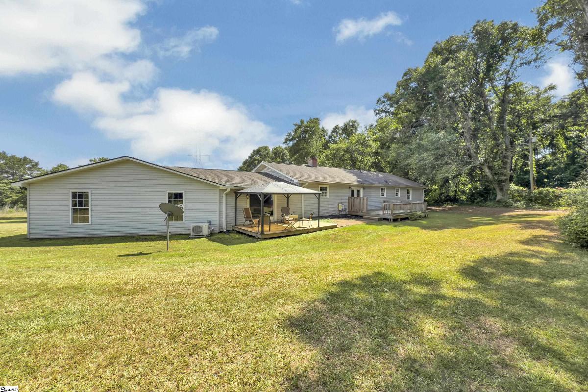 Looking for a place you can stretch out and truly enjoy some space? This charming ranch-style home on 1.25 acres in the desirable Powdersville area offers just that! With over 2,000 sq ft of beautifully updated, single-level living, this 3-bedroom, 2.5-bath home is move-in ready. The spacious kitchen features glazed cabinetry, granite countertops, stainless steel appliances, and a built-in coffee/wine bar. Bamboo hardwood flooring flows throughout, adding warmth and elegance. A cozy media room includes a fireplace, surround sound, and theater equipment perfect for movie nights or game day. The large family room with its own half bath is ideal for entertaining, and French doors lead to a generous back deck overlooking a fenced-in yard. Gardeners will love the organic garden ready for vegetables, herbs, and flowers. Additional features include a 3-car attached garage, security system, All this, just minutes from downtown Greenville and I-85. If you're craving space, comfort, and convenience this one checks all the boxes.
