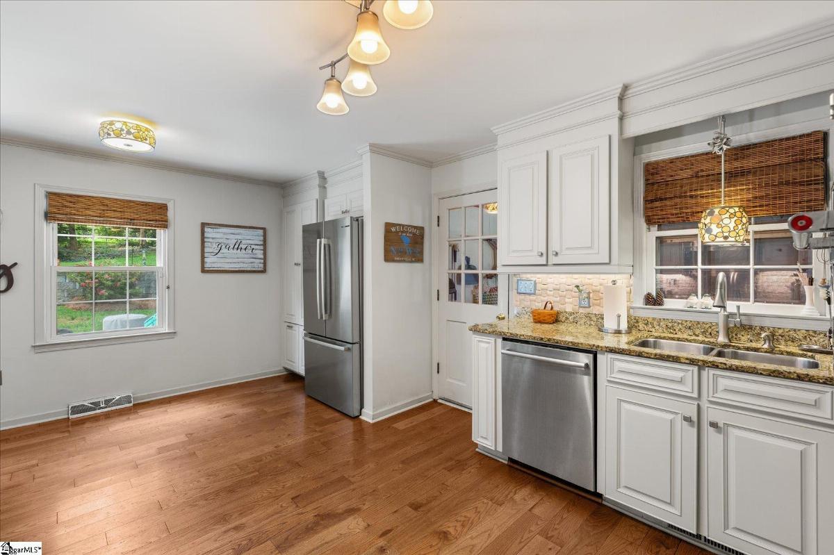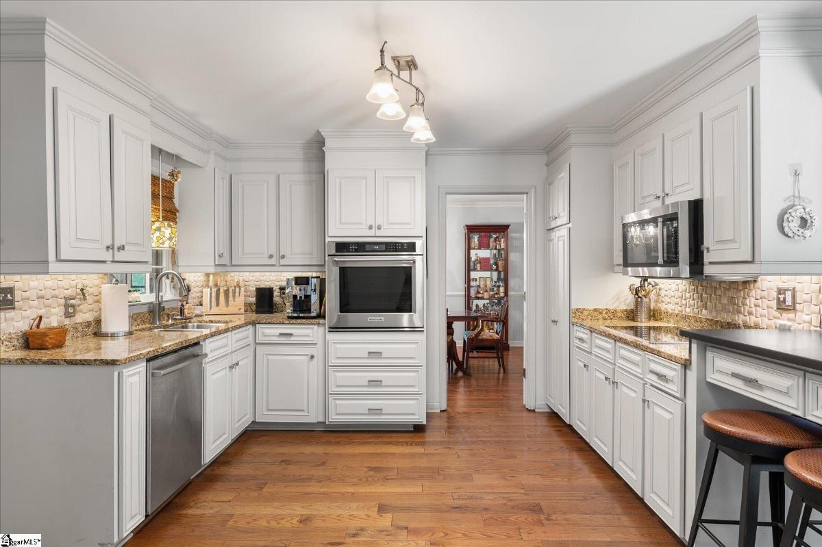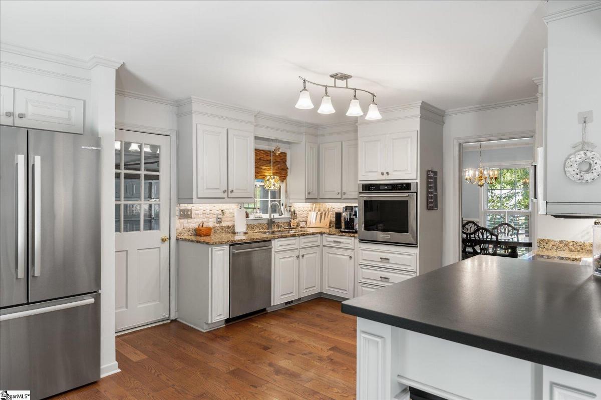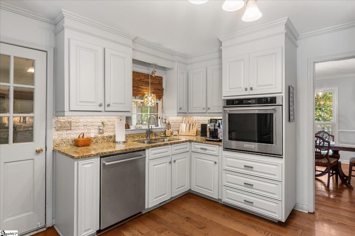 Welcome home to this beautiful 2-story brick traditional home! Perfectly tucked away on a peaceful cul-de-sac lot, in one of the area’s most sought-after neighborhoods. From the moment you walk in, you’ll notice the timeless charm paired with modern updates. Gleaming hardwood floors flow upstairs and down, leading you through light-filled living spaces. The expanded kitchen is the true gathering place—featuring granite counters, bar seating (with stools included), and an open design that makes cooking, entertaining, and everyday living a breeze. Gather in the cozy den by the gas log fireplace with its striking brick feature wall, host dinner parties in the formal dining room, or enjoy quiet mornings in the living room. Upstairs, all four bedrooms are conveniently located, along with the laundry room for everyday ease. The primary suite is a retreat with hardwood floors, two closets, and a spa-like bath featuring a zero-entry tile shower, quartz vanity with soft-close drawers, dimming lights, and a high-end mirror which has the ability to defrost. Three additional upstairs bedrooms, with soft carpet, share a stylish guest bath. Need storage? A full attic with pull-down stairs has you covered. And for peace of mind, the crawlspace is fully encapsulated—adding value, efficiency, and protection for years to come. Step outside to your fully fenced backyard, where the reinforced patio is ready to be screened in for year-round enjoyment. There is also a shed in the backyard to store all of your yard equipment. But it’s not just the home you’ll fall in love with—it’s the lifestyle. This vibrant community offers something for everyone: a pool, clubhouse, playground, walking trails, sports fields, tennis, pickleball, basketball, a swim team, even a lake and creek to explore. This home checks all the boxes: updated, move-in ready, and surrounded by amenities. Don’t miss the chance to make it yours! Call Nicole Tebano with RE/MAX RESULTS at 864-630-6736 for any questions or to schedule a showing today.