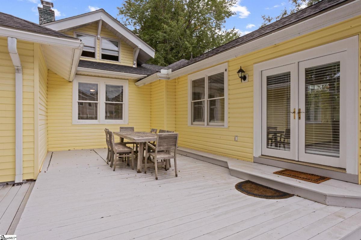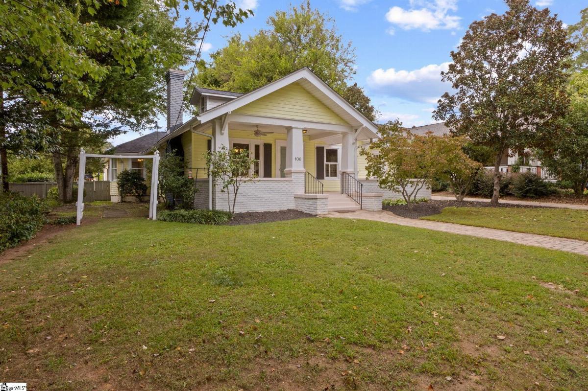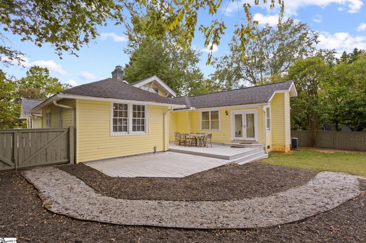 This historic 1916 craftsman style bungalow in the Augusta Road area offers over 3,100 square feet of flexible living space in one of Greenville’s most desirable neighborhoods. With a newer roof, updated HVAC, new hot water heater and a fully renovated kitchen, the home combines historic character with modern updates.The main level includes a large living room with fireplace, formal dining, a study, and three bedrooms including the primary suite. The kitchen features granite countertops, updated appliances, and connects to a breakfast nook and oversized laundry room. A dedicated dressing room adds extra storage and functionality. Upstairs, two additional bedrooms and a full bath provide plenty of room for family or guests. Multiple fireplaces, wide hallways, and original hardwood floors highlight the home’s craftsmanship. A family room off the back opens through French doors to a deck and a flat, fenced backyard—ideal for gatherings, play, or gardening. The backyard also includes a shed/workshop and plenty of off street parking. Outdoor living is just as inviting, with a wide front porch set on one of the broadest streets in the Augusta Road area. Zoned for Augusta Circle Elementary and only minutes from downtown Greenville, this home offers space, location, and community. Photos have been virtually staged.