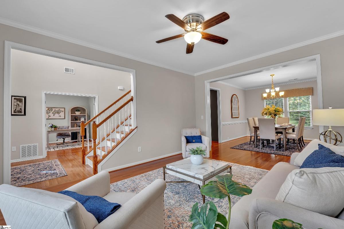 Listing provided by Michelle Roberts at Coldwell Banker Caine. Send all inquiries to mroberts@cbcaine.com, 864-901-2215. Price Reduced! Newly Reintroduced – with a fresh NEW listing (MLS 1567378) in late August! Welcome to 139 Scotts Bluff Drive, this beautiful 4-bedroom, 2.5-bathroom home set on a generous .58-acre lot with mature trees and a private backyard is the oasis ready for you to enjoy this Fall! This home has been pre-inspected, and repairs completed-- you can't beat this deal. Greeting you upon entry of the home is the grand two-story foyer leading you into the private office or study with French double doors. Across the hall are the formal living room and spacious formal dining room that are perfect for hosting family and friends. The kitchen is the heart of the home, featuring a center island with bar seating, granite countertops, tile backsplash, stainless steel appliances, and ample pantry and cabinet space. Open to the kitchen is the great room with a gas log fireplace. The half bathroom and laundry room are also conveniently located on the main floor. Upstairs, the home features four well-appointed bedrooms, including a spacious primary suite with a gorgeous en-suite bathroom and huge walk-in closet. Down the hall, the possibilities are endless in the 20’x16’ flex room with walk in closest for a 5th bedroom, playroom, game room, man cave, craft room… you name it! Outdoors, the property truly shines. Mature trees surround the backyard, creating a sense of serenity and privacy. The expansive backyard is calling your name, whether you’re dreaming of summer barbecues, a play area, or a quiet retreat under the covered patio pergola to enjoy the outdoors. Enjoy the social amenities such as the community pool and playground. Conveniently located ~ 7 miles from Five Forks shopping and dining and Downtown Simpsonville- you can’t beat it! With its spacious layout (over 3200 Square Feet), a 3-Car Garage, natural setting, and an inviting design, this home is the perfect place to create lasting memories. Pre-Listing Home Inspection provided in MLS documents. Thinking of adding an in-ground pool? The septic is in the front! Don’t miss the opportunity to make it yours, schedule your private tour today.