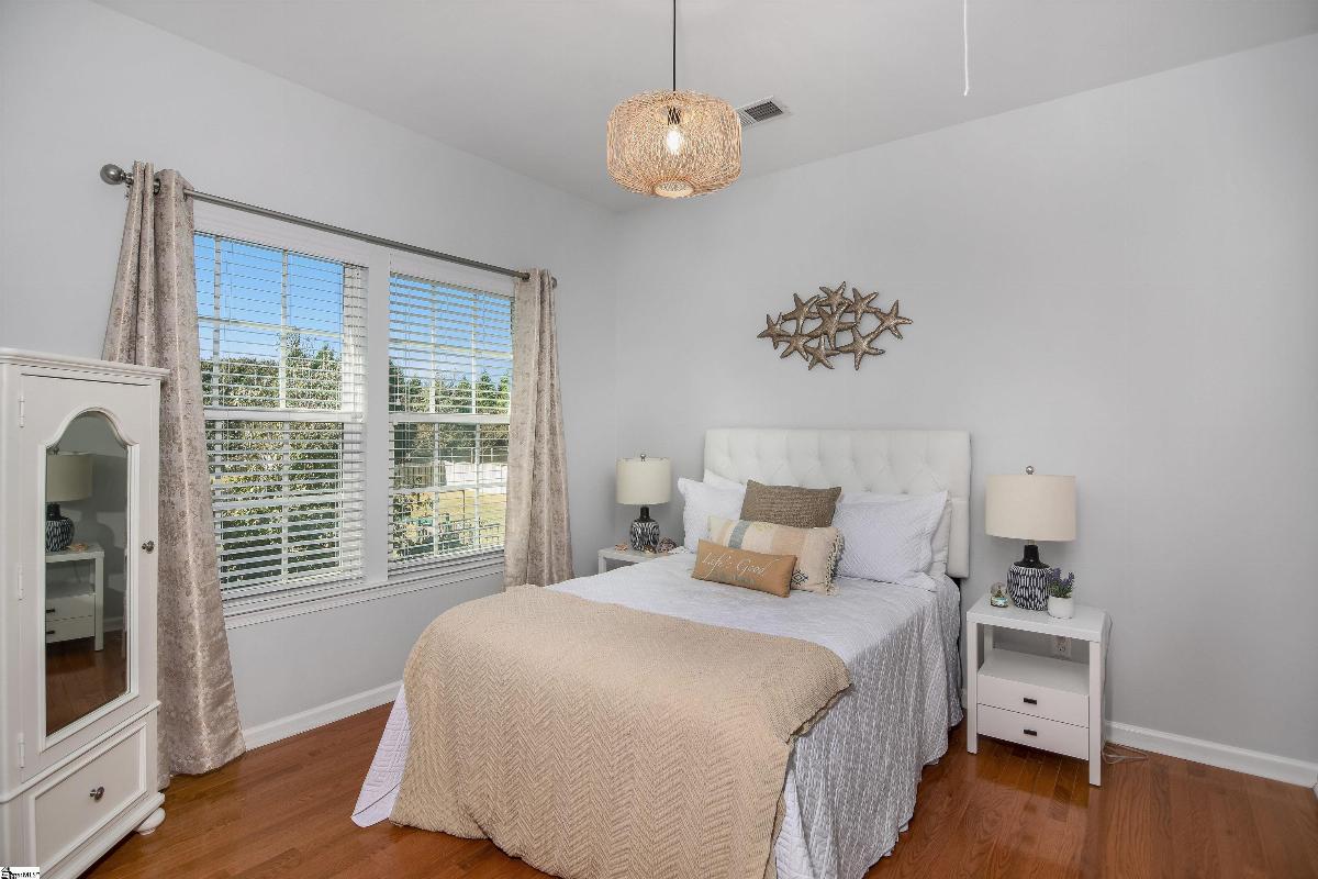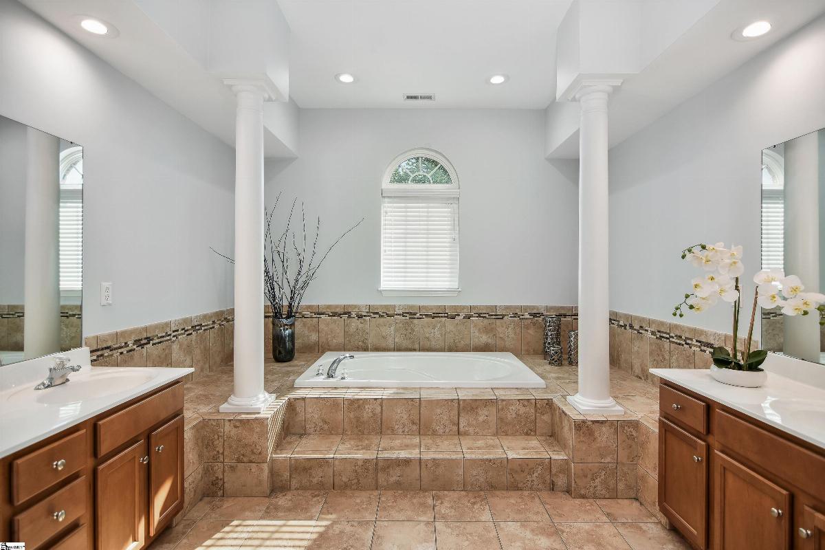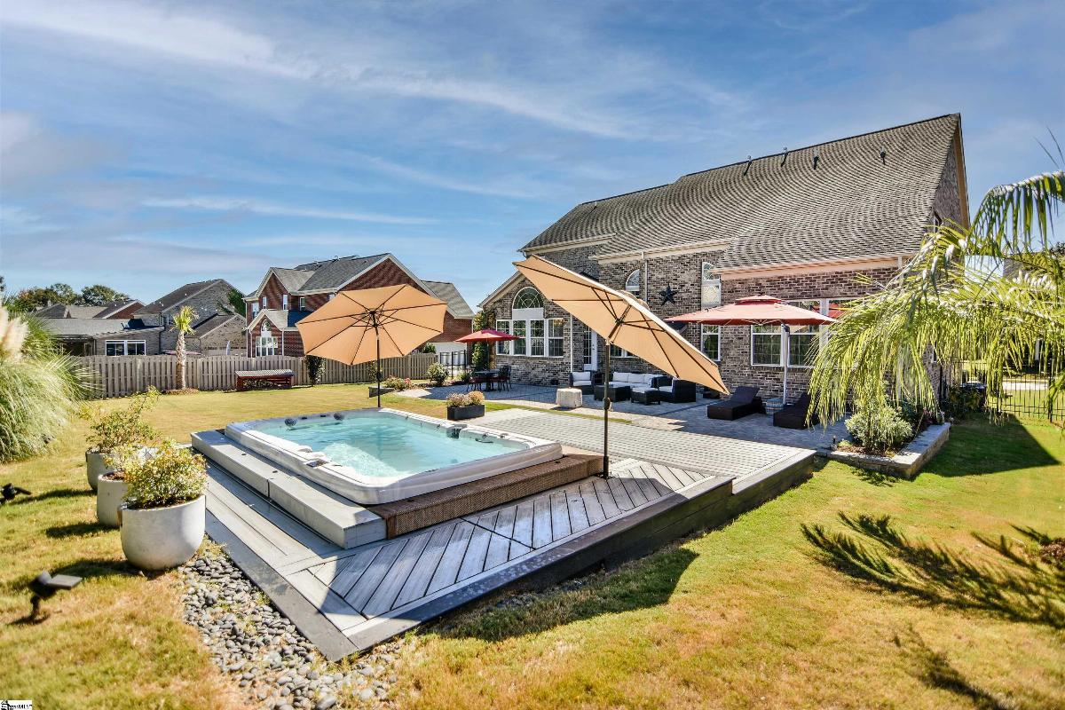 STOP THE CAR! This is the ONE! Situated on a long cul-de-sac in the prestigious and super convenient gated community of Plantation Greene, the LOVELY 4BR FULL Brick home is a perfect choice! From the excellent location, to the amazingly updated private outdoor living spaces with swim spa, to the spacious indoor floor plan, YOU can move-in here before the holidays! Stepping into the two story foyer, you will quickly notice the updated lighting throughout including the amazing entry chandelier highlighting the split/double staircase. To the left is an intimate gathering formal living room while to the right a holiday gathering formal dining room. The open concept of this popular Avalon floor plan boasts a two-story great room with gas log fireplace while flowing to this massive kitchen and breakfast area (aka morning room!) This kitchen provides ample space for all hands on deck for preparing meals and entertaining with the expanded eat-at island, the abundance of cabinetry, the newer SS appliances (including frig), and a large walk-in pantry! The breakfast area boasts morning sunshine all around and allows access the the outdoor living. ALSO, this layout allows for the potential for TWO offices or an office with French doors and a sunroom/library with beautiful custom shelving. This latter sunny space also provides an access to the backyard! Speaking of backyard, these owners spared no expense with renovations of this space.... a mega-sized custom paver patio, fence completion, added landscaping including about a dozen fast-growing evergreens, palm trees, magnolias, and more, PLUS a premium 13' swim spa with cover! WOW!! Upstairs the spacious primary suite boasts a trey ceiling, luxury vinyl flooring, dual walk-in closets, and private bath retreat with separate vanities, tile shower, and glorious tile surround garden tub! The three secondary bedrooms are wonderfully sized with great closet spaces and hardwood floors and share a large hall bath. What more could you want? Wait, two-car side load garage with added built-in storage, FRESHLY painted interior, main level walk-in laundry room, and NO carpet! In addition, this beautiful and active community features a lovely, private pool with lazy river, a playground, fishing pond, great sidewalks for walking/running, park areas with picnic tables, AND a clubhouse! This super convenient area is just 10 minutes to about everything you need--restaurants and shopping on Woodruff Road, I-85, I-385, GSP International Airport, and the amazing downtown Greenville! Do NOT miss this opportunity to own your DREAM HOME at 15 Windrush Lane in Greenville, SC!