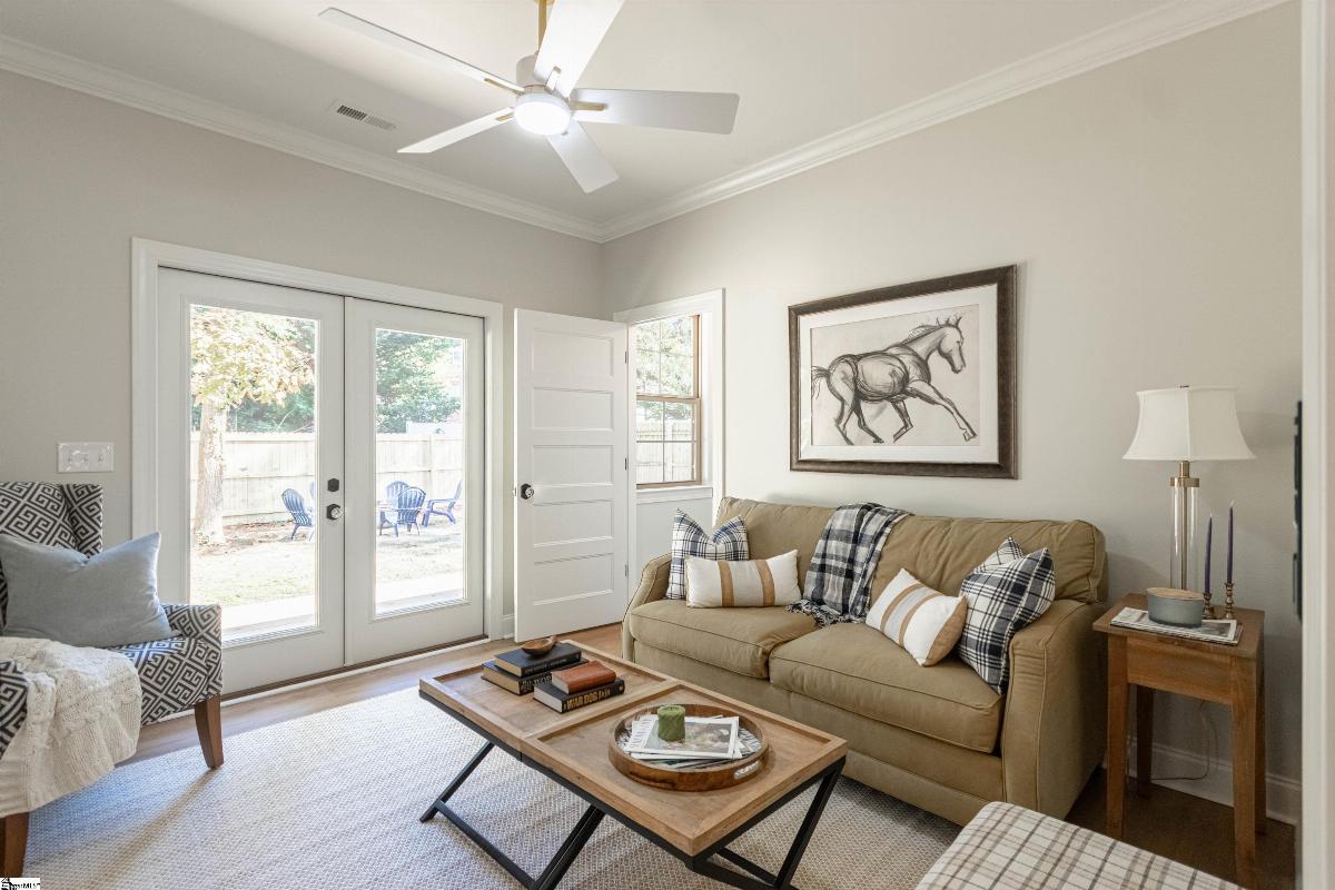 **For more information regarding this listing, please contact The Crigler Group at (864) 458-SOLD (7653). Brand new construction and designer built, this exceptional 3-bedroom, 2-bath home at 18 Essex Court offers style, comfort, and meticulous attention to detail throughout. The open, light-filled interior features 9-foot ceilings, premium luxury vinyl plank flooring, and custom-designed lighting. The spacious great room showcases vaulted ceilings and an electric fireplace, creating an inviting space for everyday living and entertaining. The chef’s kitchen is beautifully appointed with quartz countertops, premium Diamond cabinetry, a custom vent hood, stainless steel appliances, and a custom-built pantry. A breakfast area with coffered ceilings adds architectural interest and charm. The primary suite is a true retreat with a tray ceiling, custom designed closet, and a spa-inspired bath featuring a furniture-style dual sink vanity, custom-tiled walk-in shower, and soaking tub. Two additional bedrooms and a hall bath with a furniture-style vanity provide comfortable accommodations for family or guests. Additional highlights include a custom-built office with shelving, a cozy den with access to the rear deck, and a convenient walk-in laundry room. Outside, the fully fenced backyard and newly sodded front and rear lawns offer beautiful, low-maintenance outdoor living. Ideally located just minutes from Downtown Greenville’s shopping, dining, and entertainment, this home perfectly blends modern luxury with everyday functionality. Do not miss the opportunity to experience this stunning property in person.