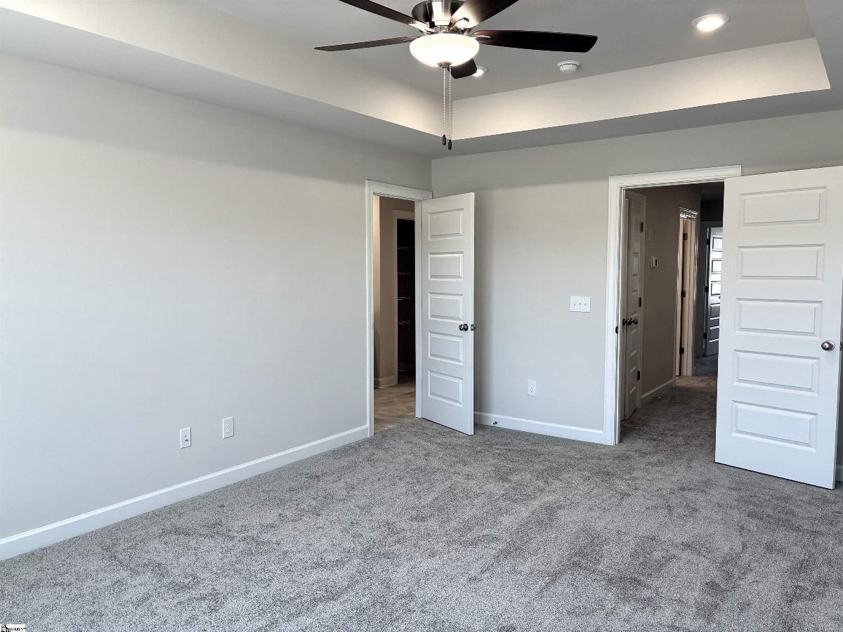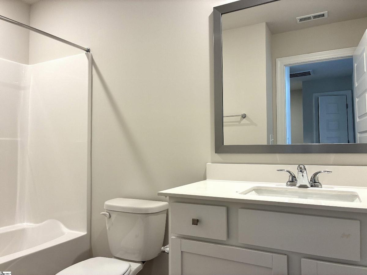 Welcome to your Hampton style custom-curated designed home. This Carson plan by Cothran Homes has a lovely living room that leads right into the open concept kitchen and dining area. Fulton Shugar white shaker style cabinets, Satin Nickel hardware, Fashion White Quartz countertops, under cabinet lighting and spacious center York Drift-stained Island make this charming and inviting kitchen the place to be. Enjoy cooking on your GE Stainless Gas Range and whip up a meal so tasty your family will be talking about it for days. The kitchen also includes GE Stainless above-the- range microwave and dishwasher. This 3 Bedroom, 2 ½ bath, includes 5” wide Polaris Wild Dunes luxury vinyl plank flooring throughout 1st floor main living areas and Shaw Midway Plaza Pebble Creek carpet in second floor bedrooms. Spacious Owner’s bedroom with Tray Ceiling, LED Disc Lights, Minka Ceiling Fan and walk- in closet. Stunning en-suite includes Sublime Vision Dorado resilient floors, full walk-in shower, York Drift-stained double sink vanity, Arctic White Quartz countertop, white rectangle undermount sinks, and linen closet. Second floor laundry room includes Washer/ Dryer hookup and shelving for all your laundry accessories. The rear covered porch is the perfect spot to do some outdoor entertaining. And last, but not least, Sherwin Williams City Loft interior wall paint, living room LED Disc Lights and Minka Ceiling Fan add the perfect final touches to complete this move-in -ready home.