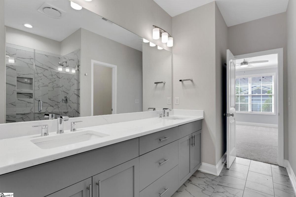 For a private showing, please call Bo and Nikki Cable with Real Broker, LLC at 864-660-9610. Discover the perfect blend of luxury, location, and low-maintenance living in this beautiful end-unit townhome. Located in Hamilton Townes, one of Greenville’s most desirable communities, you are just minutes from Woodruff Road, I-85, I-385, and Verdae. The Halton floor plan is ideally positioned on a premium corner site to offer extra yard space and an abundance of natural light.The main floor features the primary suite, complete with a spacious walk-in closet and a spa-inspired bath boasting a frameless tiled shower, upgraded faucets, and designer tile. The open floor plan features a kitchen with upgraded countertops, under-cabinet lighting, and a gas range. Open to the dining area and a family room with a cozy fireplace. Upstairs, a flexible loft provides the perfect space for a home office or media room, accompanied by two large guest bedrooms and a full bath with double vanities. Many hours will be spent on your screened-in porch overlooking the fenced-in backyard, perfect for relaxing or entertaining. A spacious two-car garage completes this beautiful home.