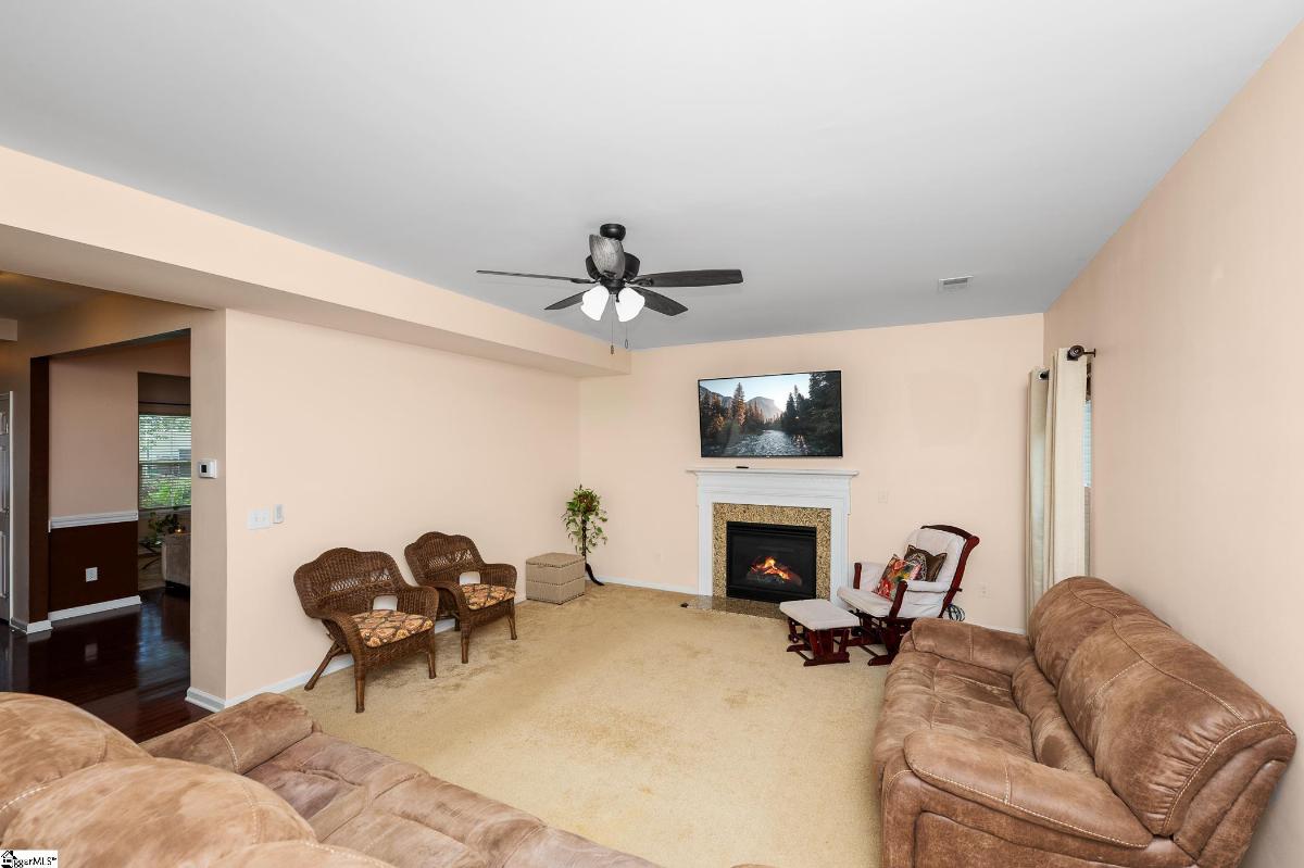 Welcome home to Forrester Heights—where location, upgrades, and lifestyle meet! This beautiful 3-bedroom, 2.5-bath home is filled with thoughtful details and high-end upgrades throughout, including its premium lot backing to private wooded views. Step inside and be greeted by a wide foyer with gleaming hardwoods leading to a formal living and dining room—perfect for entertaining or hosting holidays. The heart of the home is the spacious great room, complete with a cozy gas fireplace, that flows effortlessly into the upgraded kitchen. Here you’ll find granite countertops, solid wood cabinetry, stainless steel appliances, tile flooring, an island, a walk-in pantry, and a sunny breakfast area. Just beyond, the bright sunroom/morning room with ceramic tile invites you to relax while overlooking the private, landscaped backyard with fruit trees and wooded backdrop. A lovely patio makes outdoor living easy and enjoyable. Upstairs, the owner’s suite offers a retreat of its own with a large walk-in closet, double vanity, and upgraded tile finishes. Two additional oversized bedrooms, a convenient walk-in laundry room, and a versatile 18x13 loft (perfect as a bonus room, office, or easily convertible into a fourth bedroom) complete the upstairs. Additional highlights include a washer and dryer, brand-new refrigerator, security system, irrigation system, storage shed, and a two-car garage with mudroom access and extra storage under the staircase. As part of the desirable Forrester Heights community, you’ll also enjoy fantastic amenities including a sparkling pool, tennis courts, and a brand-new playground. All of this in a prime location—just 1 mile from ICAR, less than 5 minutes to GE, shopping, dining, and both interstates, plus top-rated schools nearby. This home truly has it all—space, upgrades, privacy, location, and amenities. All it’s missing is you! Don’t wait, because homes like this go fast. Schedule your private showing today and get ready to fall in love!