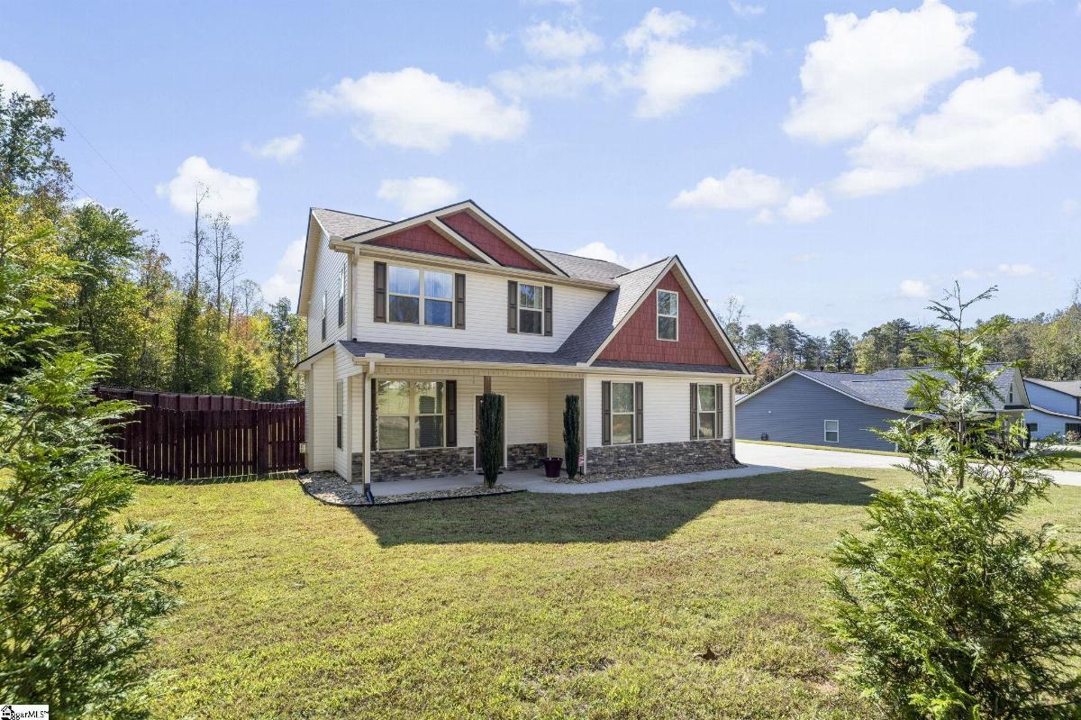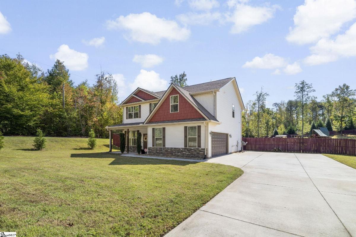 Find your oasis in Travelers Rest with a home that's move in ready, no HOA and just under an acre! Inside, you’ll find an open-concept floor plan featuring wide-plank hardwood floors throughout the main level. The sunny living room with a gas log fireplace flows seamlessly into the spacious kitchen, complete with a full stainless steel appliance package, large center island, pantry, and granite countertops. A dining area overlooks the backyard, and a convenient half bath is perfect for guests. Upstairs offers three secondary bedrooms that share a hall bath, a walk-in laundry room, and a fabulous primary suite featuring dual sinks, a dressing area, and a walk-in closet with built-ins. The backyard steals the show with incredible spaces to relax, play, and entertain! Enjoy a fully fenced backyard, a covered patio ideal for dining and relaxing, a separate grilling patio, above-ground pool, wooden playset, and even a chicken coop with chickens! There’s plenty of room to add raised garden beds, and a separate yard door leads to a workshop that opens into the garage. Conveniently located near shopping, dining, and outdoor recreation, including Paris Mountain State Park, Lake Robinson, Caesars Head, and The Cliffs communities means there is no shortage of things to do all year round! A rare find that truly has it all—modern updates, outdoor living, and the perfect blend of city convenience and country comfort. Welcome Home!