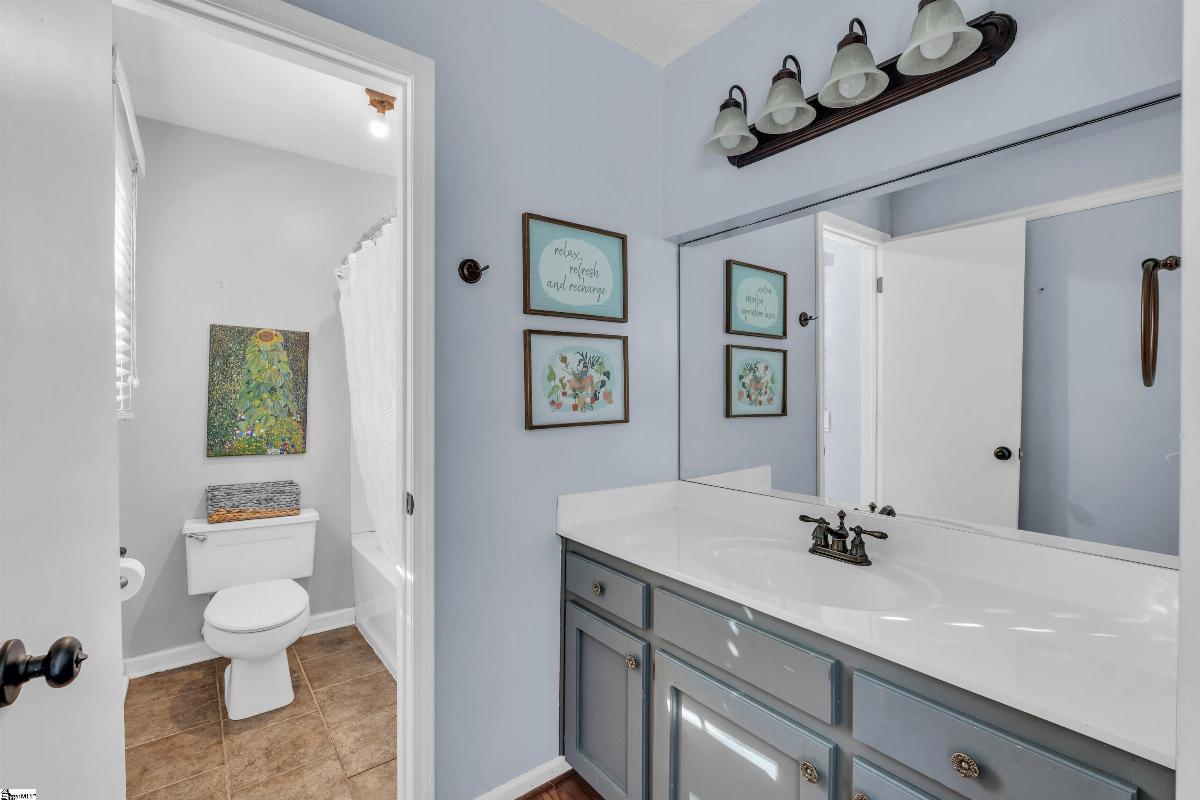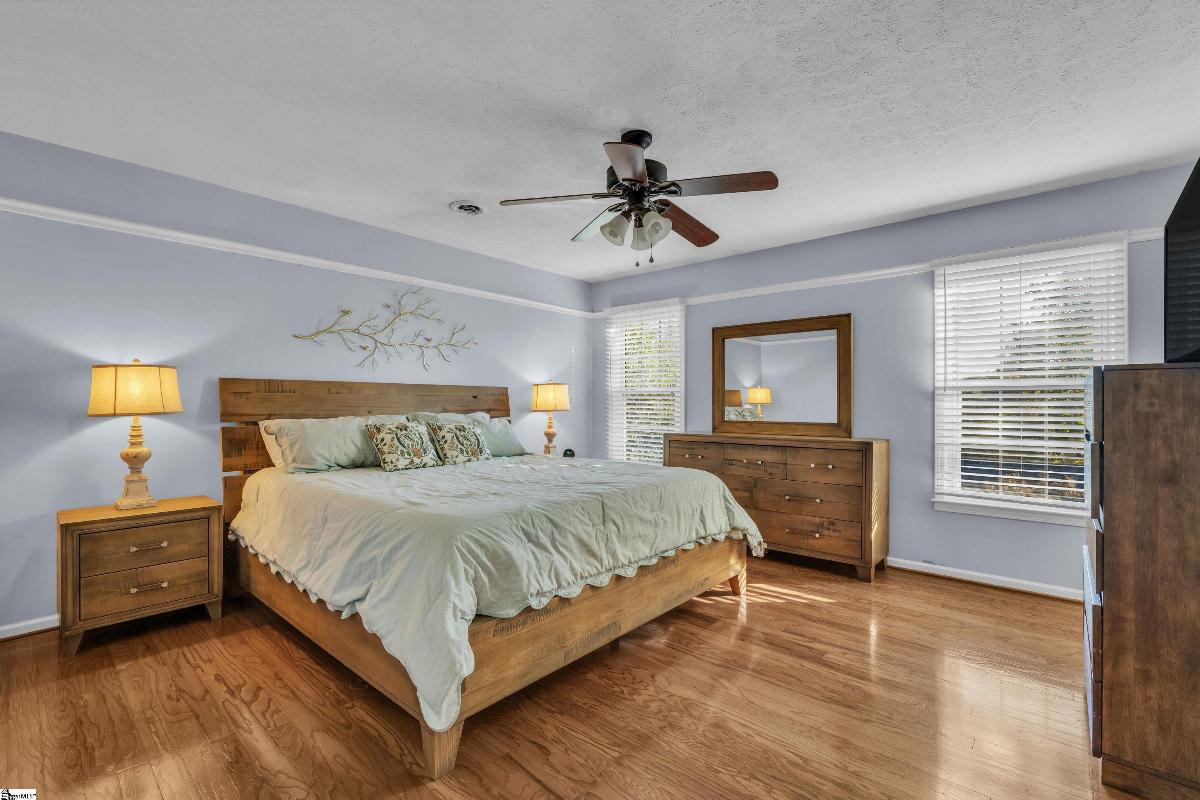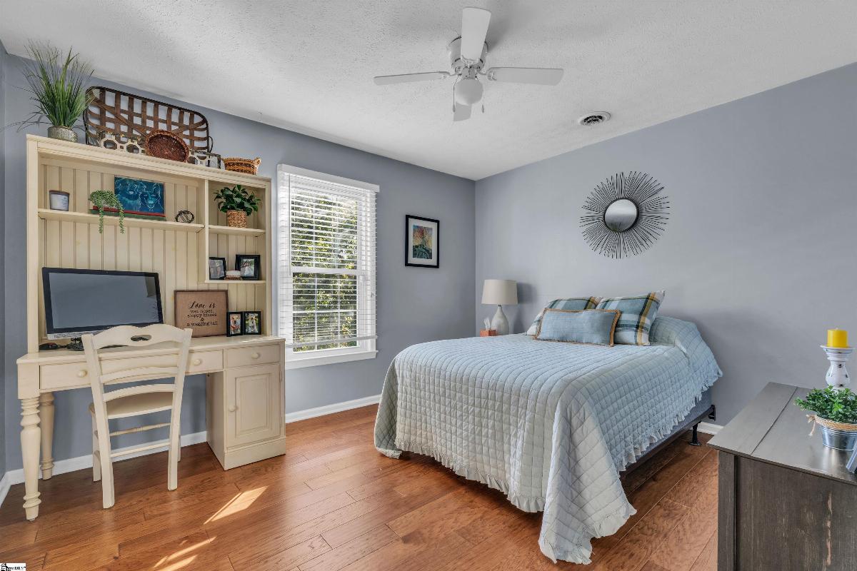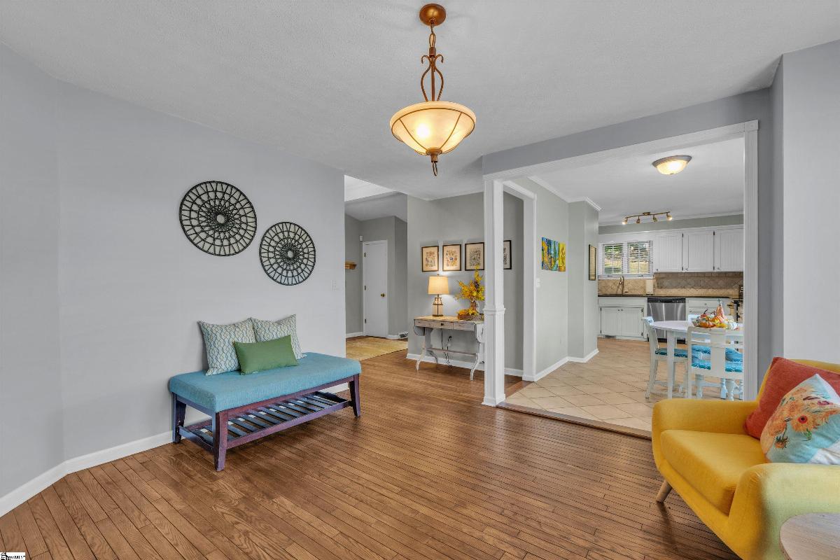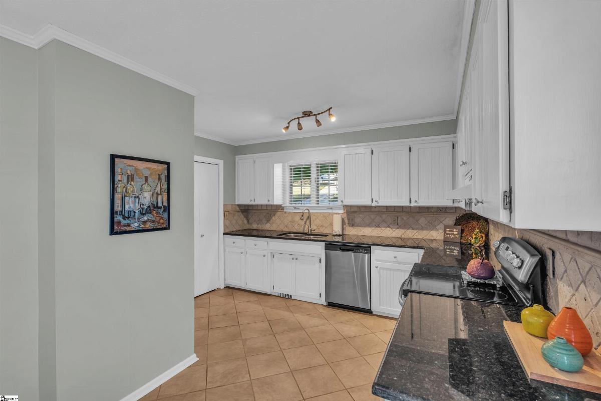 Welcome to this beautifully maintained tri-level home tucked within a quiet, established neighborhood just minutes from downtown Greenville. This spacious home offers three bedrooms, two and a half baths, and a flexible dining or den option on the main level. The kitchen blends function and style with granite countertops, a travertine backsplash, tile flooring, and modern stainless steel appliances. Just off the main living area is a 13' x 10' office with sliding glass doors that open to a large back deck with a pergola and privacy screen - perfect for gatherings, grilling, or enjoying peaceful evenings outdoors. The home features hardwood floors, tile in all bathrooms, insulated windows, replaced gutters with guards, and an enclosed crawlspace with dehumidifiers for added efficiency. A walk-in basement offers plenty of space for a workshop or storage, while the fenced backyard with two large lockable gates provides both privacy and convenience. Set in a welcoming, golf cart friendly community where neighbors wave and evening rides are part of the charm, this home is also zoned for excellent schools - making it a wonderful place to call home. Come see why this community is so loved and experience the comfort and connection it has to offer.