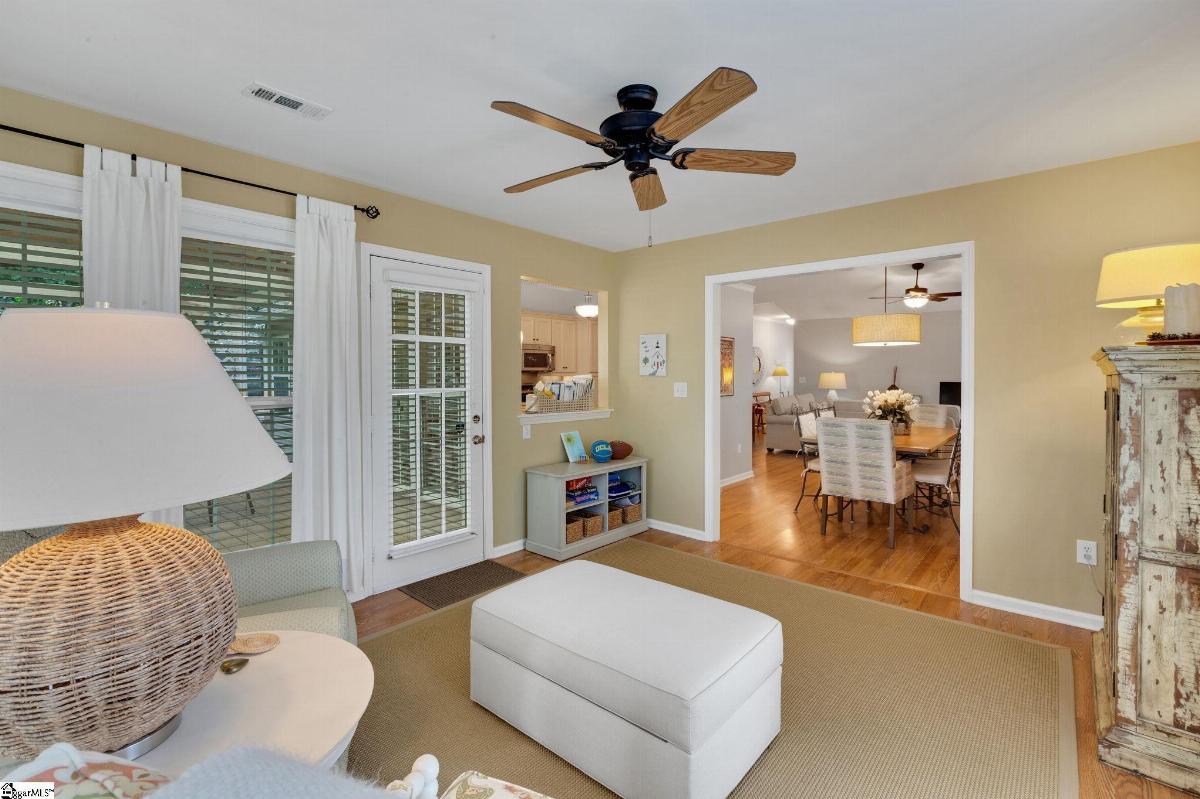 ORCHARD FARMS. Welcome to this charming home. Light flows through this open, split bedroom floorplan from the 9x17 Foyer into the Livingroom, Dining room and on to the Sunroom which overlooks this Landscaped backyard accented with trees. Neutral colors and all appliances remain. Eat-in Kitchen. The Crawl space has plenty of room for yard equipment, workbench and walk-in convenience. Established neighborhood in the 5-Forks area with Library, restaurants, stores and more. The covered deck is making this outdoor area open from the Sunroom, Kitchen and OBR. Rarely does this one level home come available and there is a Room over the Garage for Office or Den. Double Garage. Many quality features Come and see Orchard Farms.