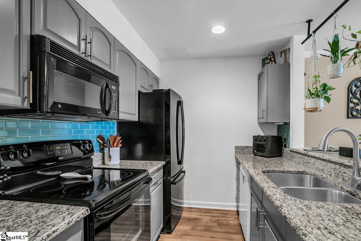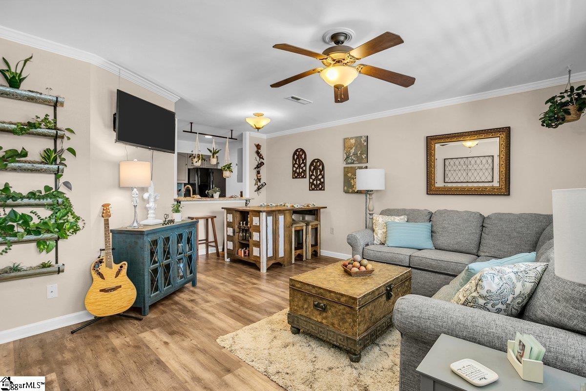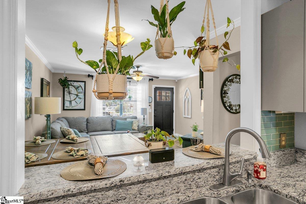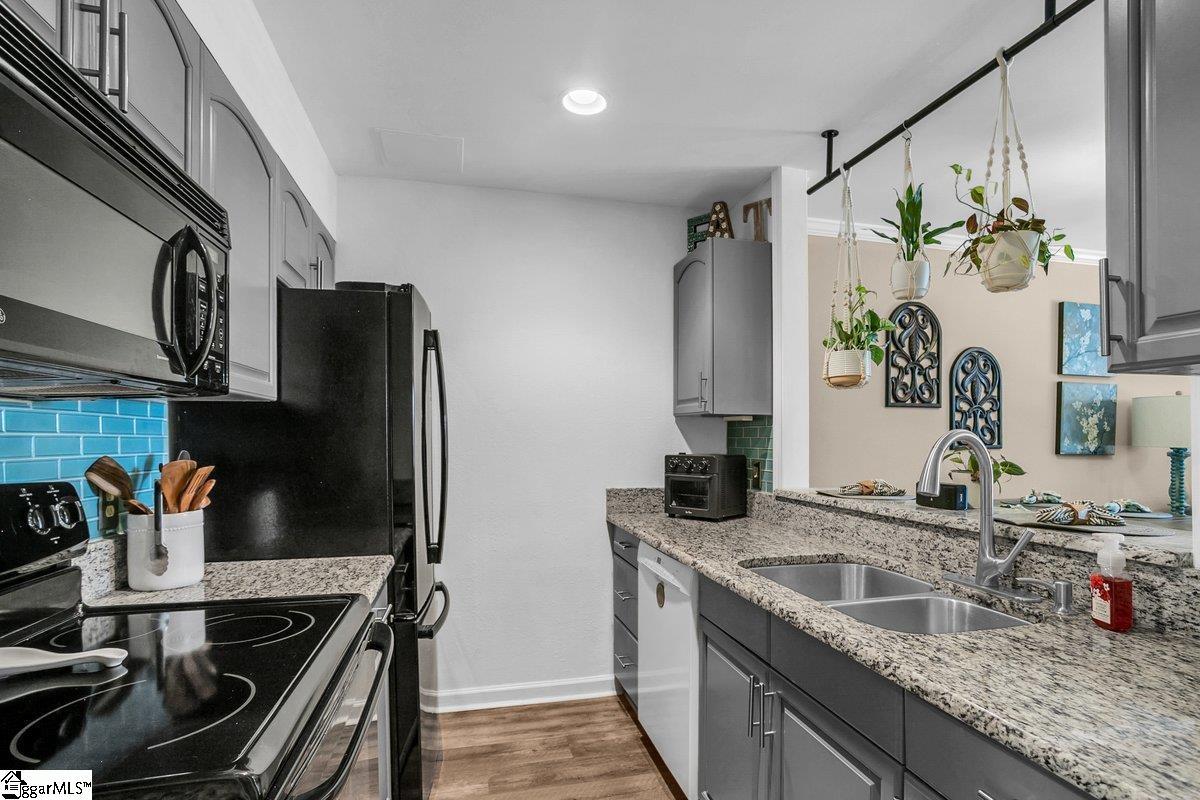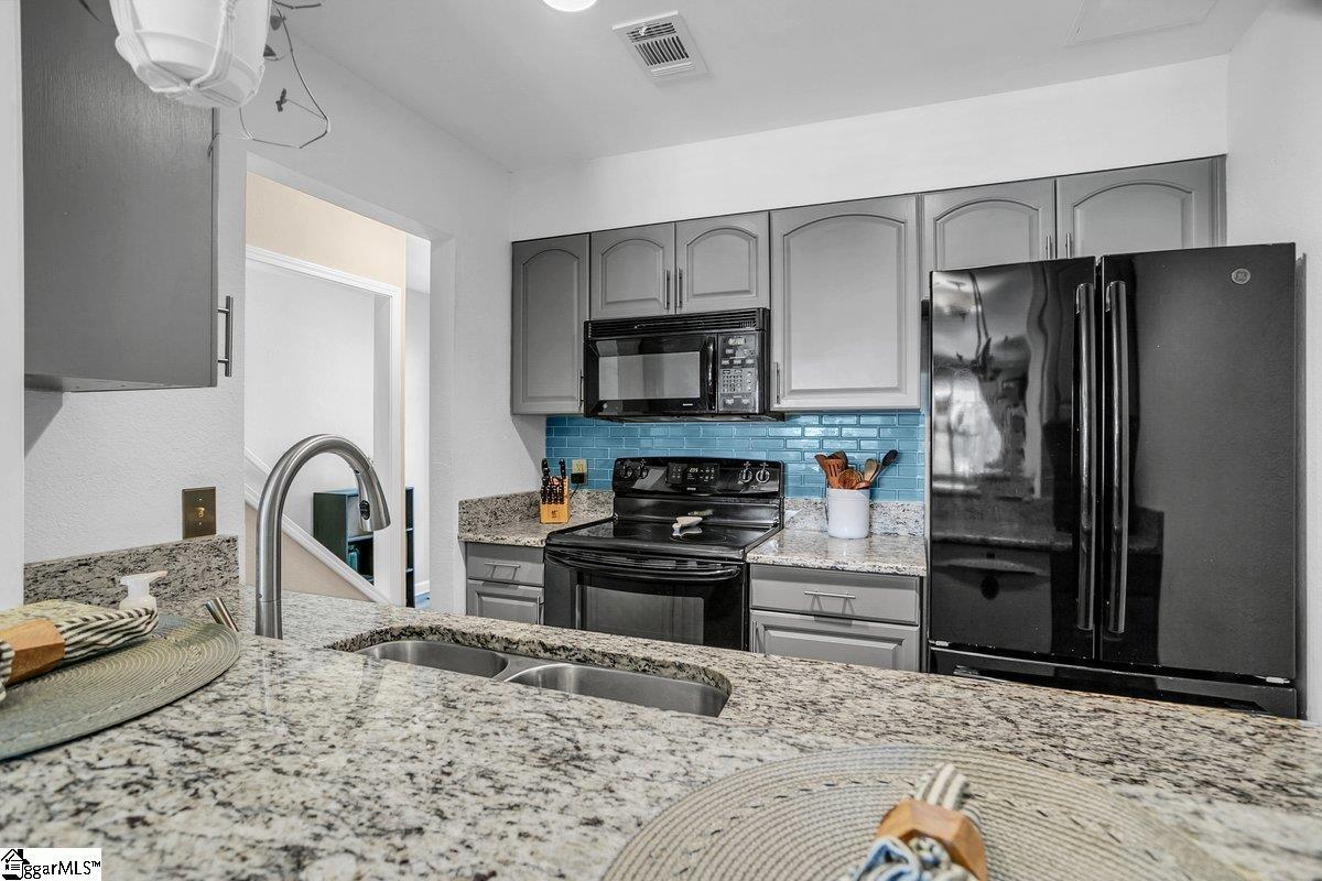 Welcome to this charming two-bedroom, one-and-a-half bath townhome located in the heart of downtown Greenville. Just steps away from shopping, dining, and entertainment. This home offers the perfect blend of convenience and comfort. Inside, you’ll find a bright and inviting living space, a functional kitchen with plenty of cabinet storage, upgraded cabinets with built in drawers, and a custom spice rack along with a cozy dining area. Seller converted the coat closet to a pantry giving you sufficient space for your cooking needs. Upstairs, both bedrooms provide ample closet space and natural light, while the fully renovated bath is conveniently situated between them. The half bath downstairs adds extra convenience for guests. Enjoy your morning coffee or evening unwind on the private patio, ideal for relaxing or entertaining or on the fabulous rocking chair front porch with views of downtown Greenville . With low-maintenance living and a prime location, this townhome is perfect for those looking to experience all that downtown Greenville has to offer. If this wasn't enough, this home is located in the Historic Heritage District. The exterior of the community was renovated in 2023 with new hardyboard, gutters, new porches, and new roofs. The city just announced the vacant shopping center across the street is going to include retail, restaurant, grocery, fitness, coffee, clothing and general convenience. The entire building will be updated on the exterior to match the growing downtown vibe.
