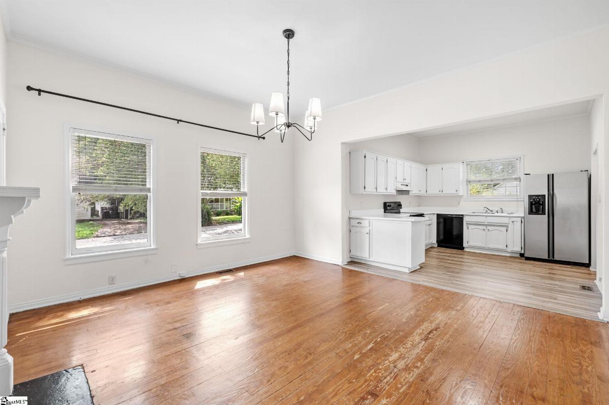 Price improvement! This early 1900s was built in Dunean Mills heyday, featuring soaring ceilings, heart of pine floors, and original fireplace surrounds. The freshly painted blue exterior beckons you to enjoy coffee on your front porch swing and drinks on the back deck. While the pace of life feels slower in this sleepy mill village, Fluor Field is approximately 1.5 miles away, and the Swamp Rabbit Trail is approximately2.5 miles away. Prisma Healthcare and St Francis Medical are also close by. The inside of the home was recently updated with new lighting fixtures through primary living spaces and new carpet in the primary suite. The LVP in the kitchen and the HVAC system were both replaced within the past 2 years. The interior features larger reach-in closets than most historic homes, and the exterior features a storage shed and a privacy fence. Move-in ready but priced lower than several comparable homes in the area to accommodate additional updates, 41 Allen is ready to welcome you home!
