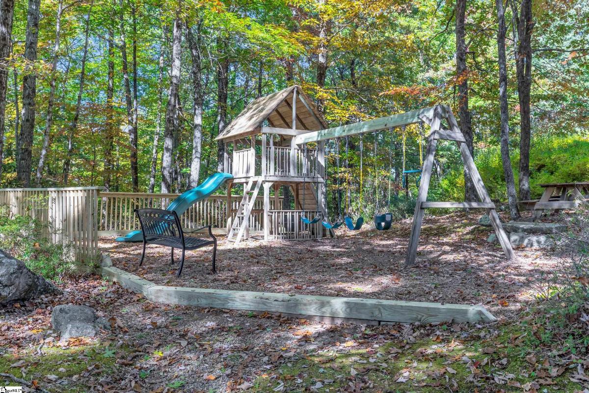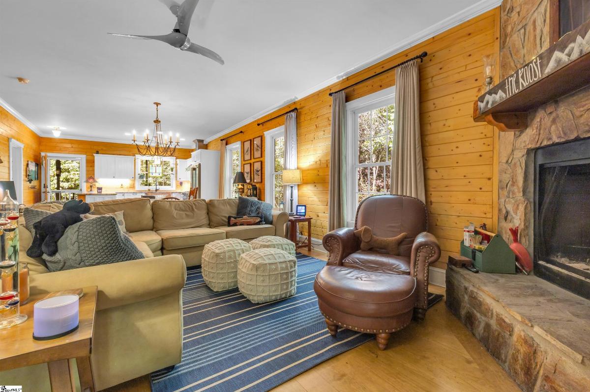 This is a mountain retreat you have to see! Charming and cozy home featuring a wood-burning fireplace, inviting screened porch, covered porch with swing, and low maintenance yard. The approximately 1,200 sq. ft. interior showcases beautiful pine floors throughout. Located in Cliff Ridge at Caesars Head, a gated mountain community at an approximately 3,000 foot elevation. You'll enjoy refreshing summer temperatures and a wealth of amenities, including two swimming pools, a clubhouse, playground, fitness center, and an 8-acre stocked lake with canoes.