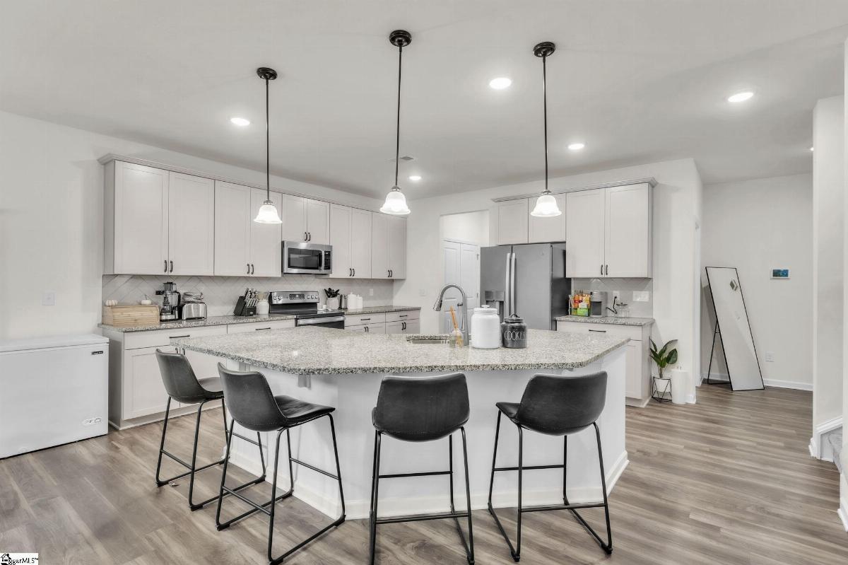 Welcome to the Desirable Harrington Subdivision! This beautiful less-than-5-year-old home sits on a prime corner lot with no neighbor directly across the street, offering extra privacy and open views. Featuring 3 bedrooms, 2.5 baths, and 2,203 square feet, this home boasts a spacious open floor plan with soaring high ceilings that create an airy, inviting feel throughout. The amazing kitchen island serves as the heart of the home — perfect for cooking, entertaining, or gathering with family and friends. Conveniently located just 15 minutes from both Mauldin and Simpsonville, and only 25 minutes to Downtown Greenville, you’ll enjoy easy access to shopping, dining, and entertainment while coming home to a peaceful neighborhood setting. Don’t miss your chance to make this modern gem in Harrington your new home!