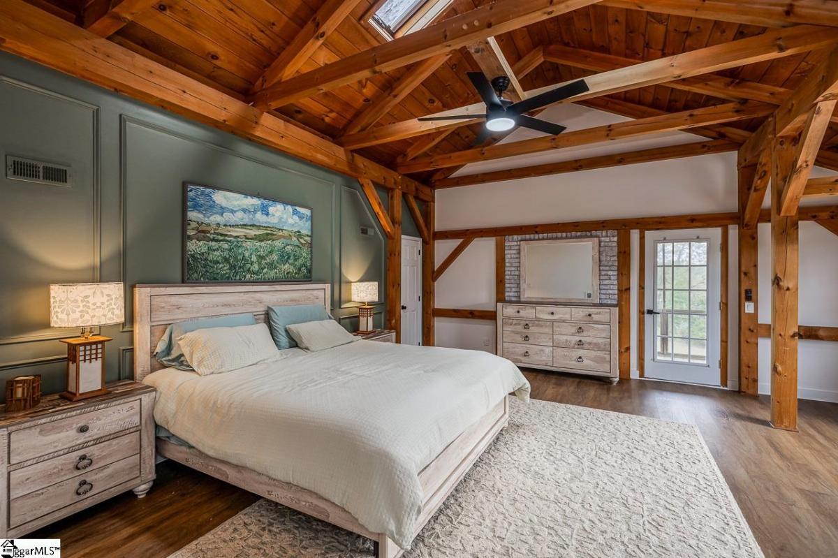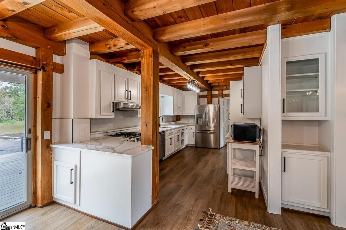 Call Alan Swartzentruber at 864-414-1049. Welcome to your private retreat in the Simpsonville/Pelzer area. This stunning post & beam Cape Cod on approx. 7 acres blends rustic charm with modern comfort. Enjoy vaulted ceilings, exposed beams, and natural light throughout. Post and beam construction like this is almost cost-prohibitive with today's prices. The renovated kitchen features quartz counters, new appliances, and updated cabinetry. Cozy up by the fireplace or relax in the sunny office overlooking the field. Step outside to your saltwater pool, expansive deck, and pergola—perfect for entertaining or quiet weekends. The primary suite includes a spa-style bath with soaking tub, walk-in closet, and screened porch. Also upstairs are 3BRs, 2BAs, and a versatile flex room (could be configured to be part of primary closet. Extras include new drainage system, encapsulated crawl space, and water filtration. Attached 3-car garage with epoxy floors. Horse property potential! Convenient to shopping, dining, schools, dntn Greenville with vibrant arts scene, top-rated restaurants, and Falls Park on the Reedy, GSP airport is 30 mins away—country living with city access!