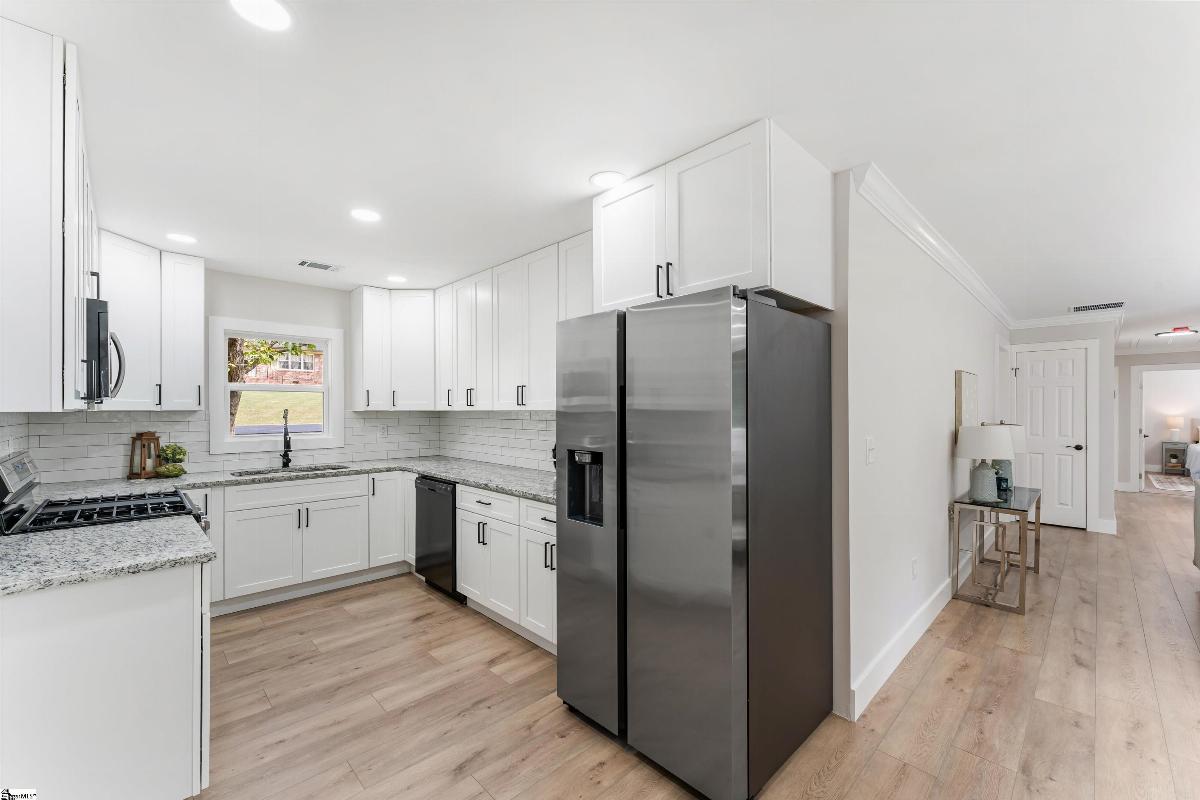 Welcome to this stunning, move-in-ready home located in a rapidly growing area just minutes from vibrant downtown Greenville and top-rated schools. This freshly renovated gem offers the perfect blend of modern updates and spacious comfort. Step inside to find a freshly painted interior and exterior, luxury vinyl plank (LVP) flooring throughout, and a beautifully remodeled kitchen featuring brand-new cabinets, sleek granite countertops, and new stainless steel appliances. The bathrooms have been tastefully updated with modern finishes, offering both style and functionality. Downstairs, enjoy a spacious fourth room in the partially finished basement—complete with a cozy fireplace—perfect for a guest suite, media room, or home office. The large garage offers ample storage space, and the expansive deck overlooks a generous backyard, ideal for entertaining, gardening, or relaxing in your private outdoor oasis. Don’t miss this opportunity to own a fully updated home in a fantastic location with room to grow!