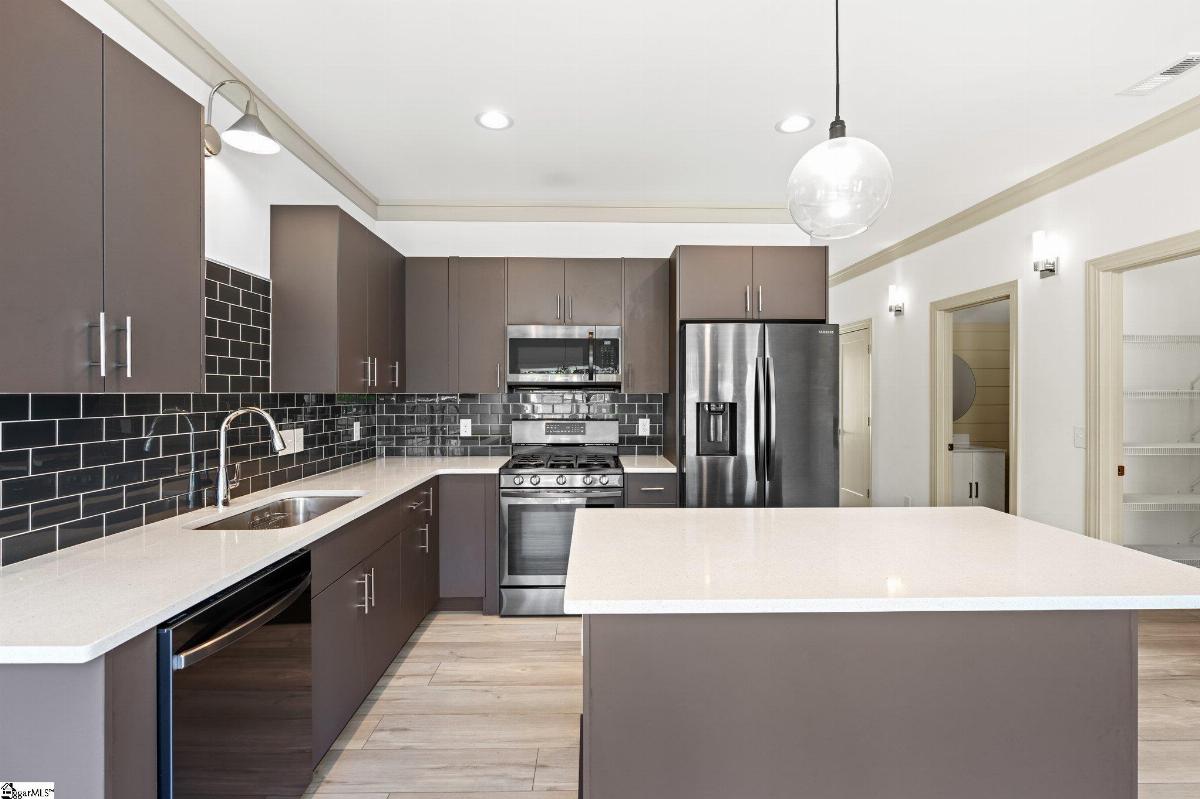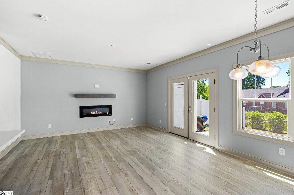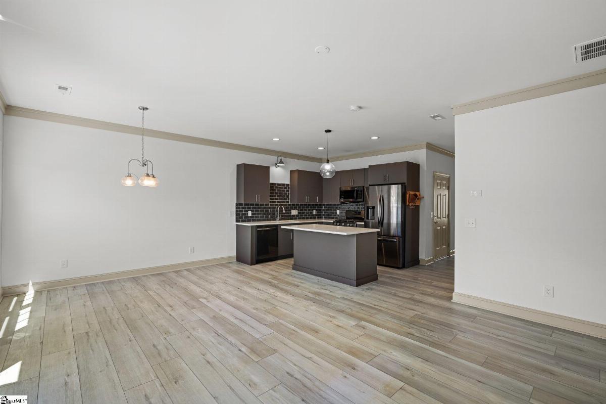 Location, location, location! This modern urban townhome is located in the heart of downtown Greer. Walk to restaurants, bars and shopping.Enjoy music and movies in the park as well as local festivals in the quaint downtown core. The middle unit floor plan has 3 bedrooms, 2 1/2baths with modern urban finishes. The attractive premium LVT flooring carries throughout the main space. The kitchen has attractive quartz countertops, rich cabinetry and black stainless steel appliances. The great room has an edgy electric fireplace that creates a sense of style and sophistication. All bathrooms feature furniture style vanities and modern fixtures. Upstairs you will find spacious bedrooms with luxurious finishes. the rear of the property has additional storage and great entertaining space. Lawn care and exterior maintenance are included in your HOA fees giving you the freedom to spend your free time however you choose.