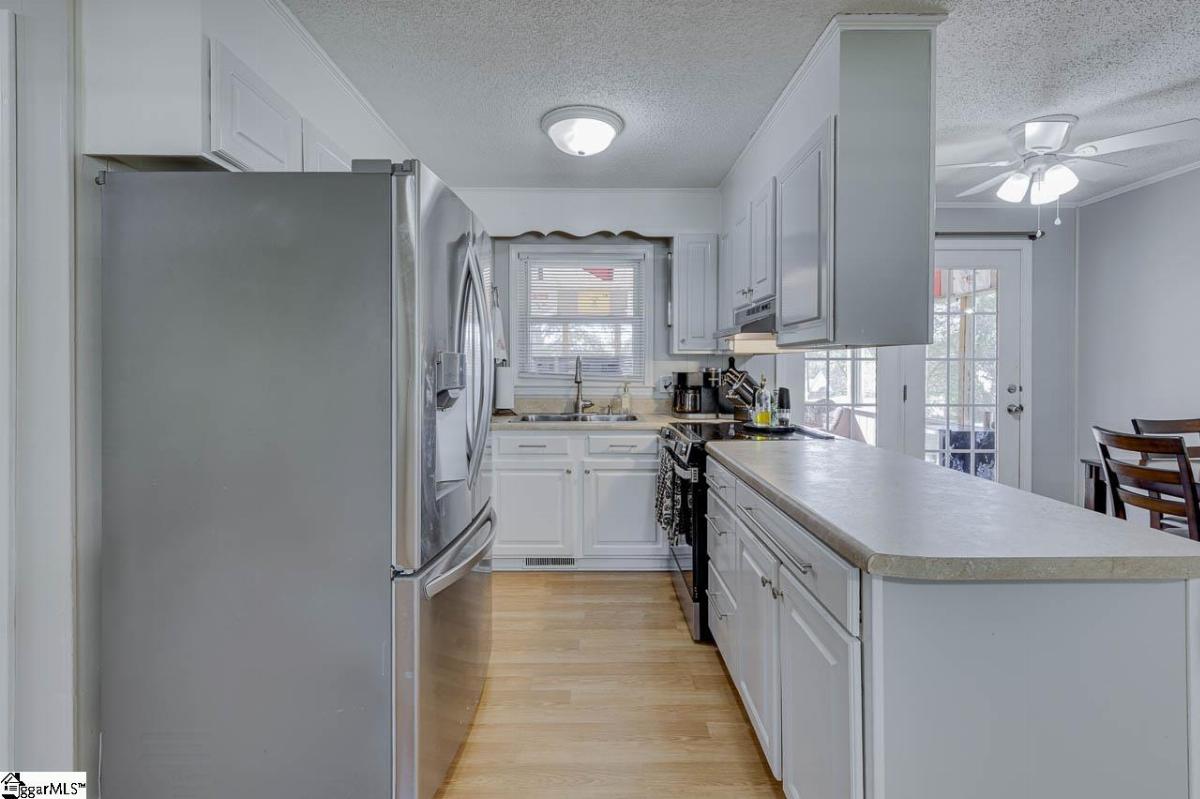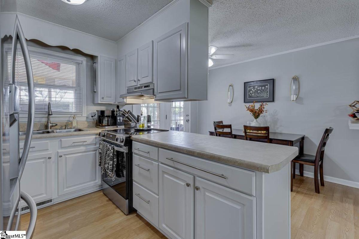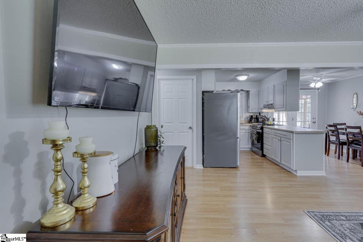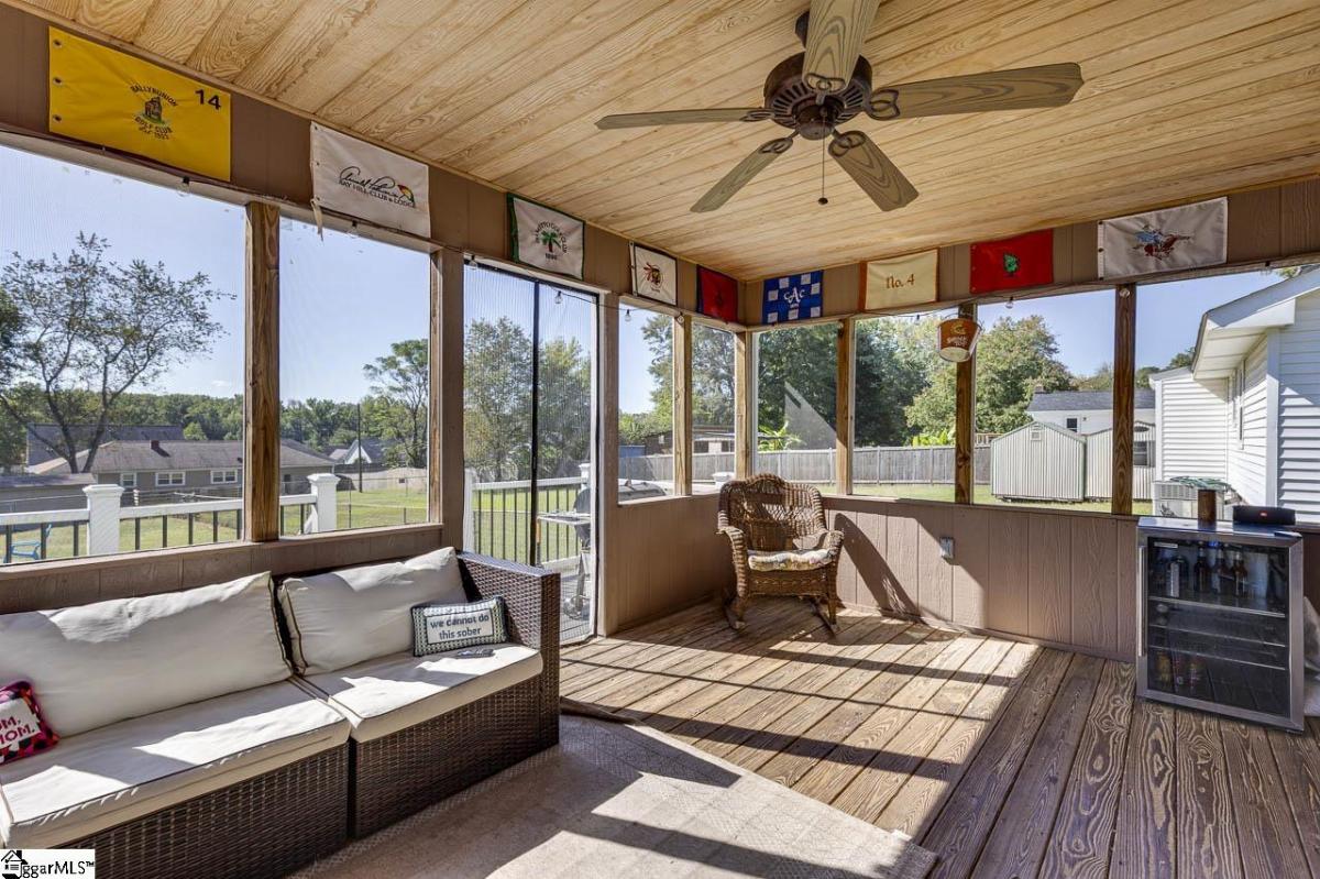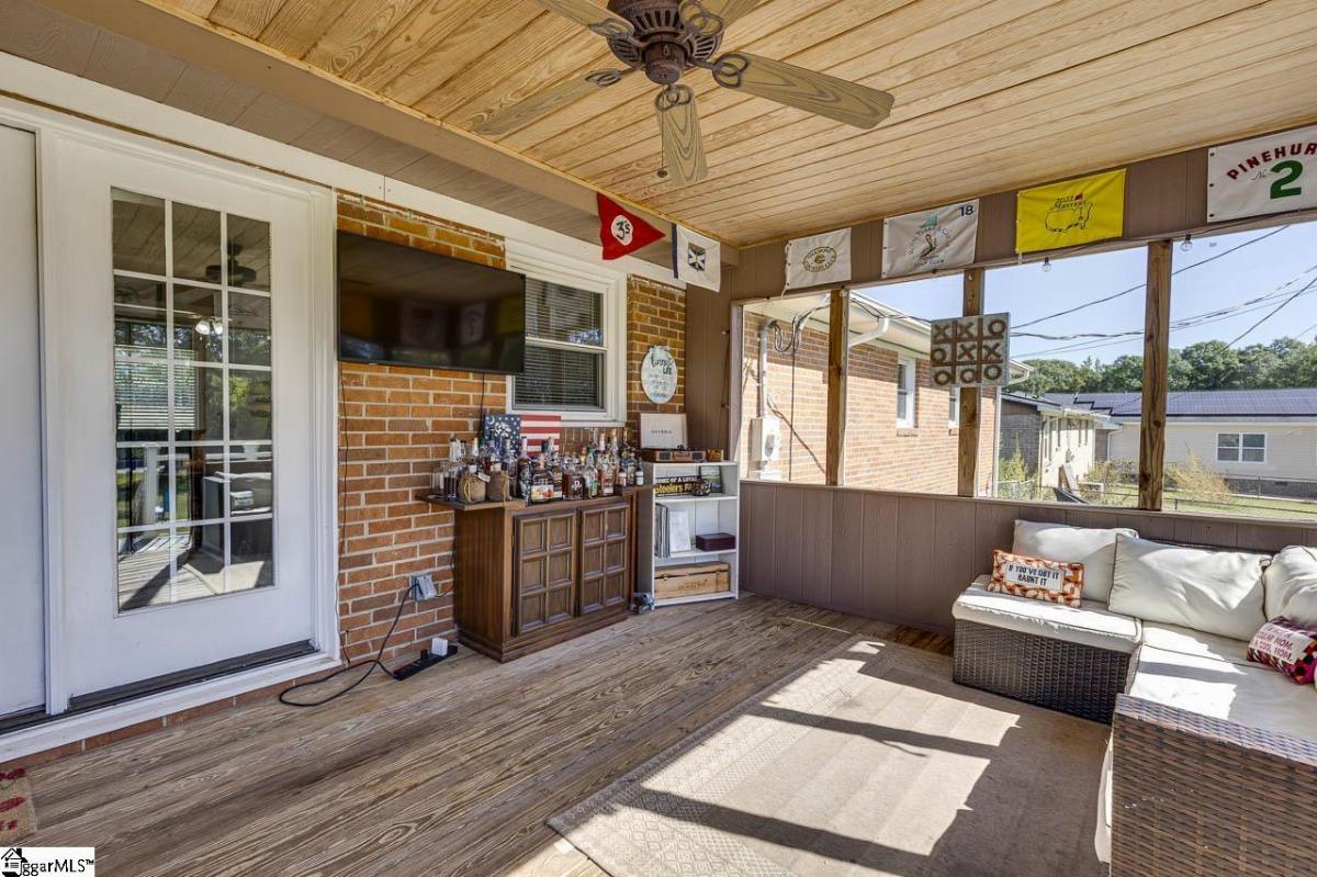 Charming brick ranch with no HOA. Laminate wood, tile, and vinyl flooring - no carpet. Spacious bedrooms, newer appliances, and updated kitchen & baths. Previous owners opened up the area between the kitchen/dining room and the living room for an open floor plan design. Rear screened porch and deck with trex decking & rails overlooks the level, large .29 acre fenced in lot. There is a detached shed with electricity also. Minutes to shopping, schools, the interstate and Greenville-Spartanburg Airport. NOTE: Taxes in 2024 were at 6%. Hurry- won't last long!