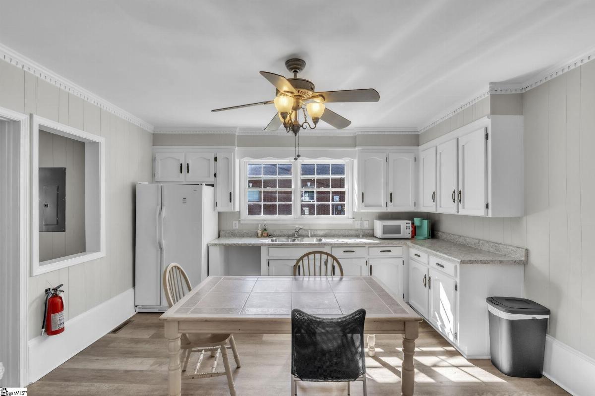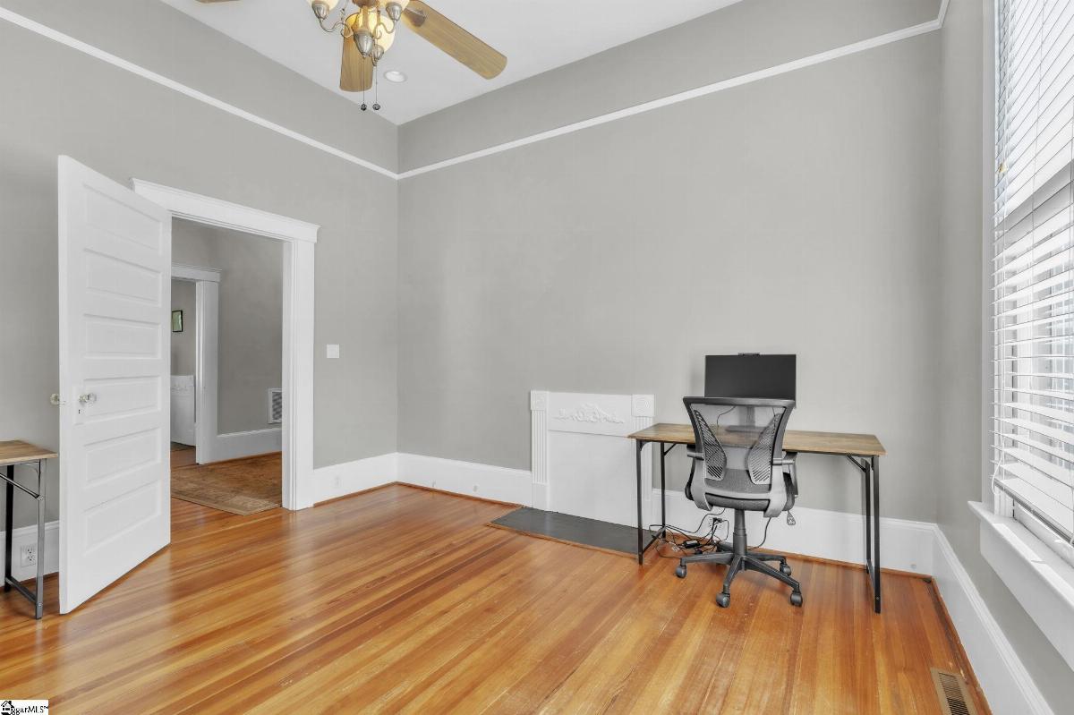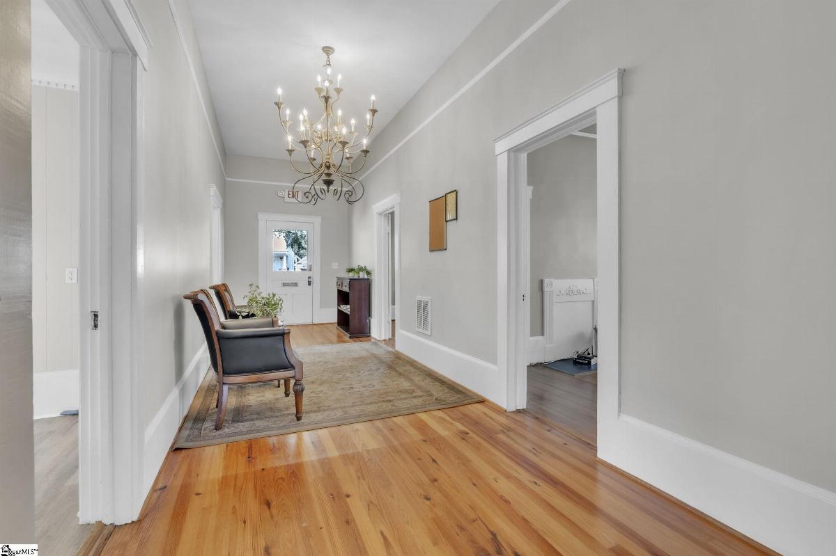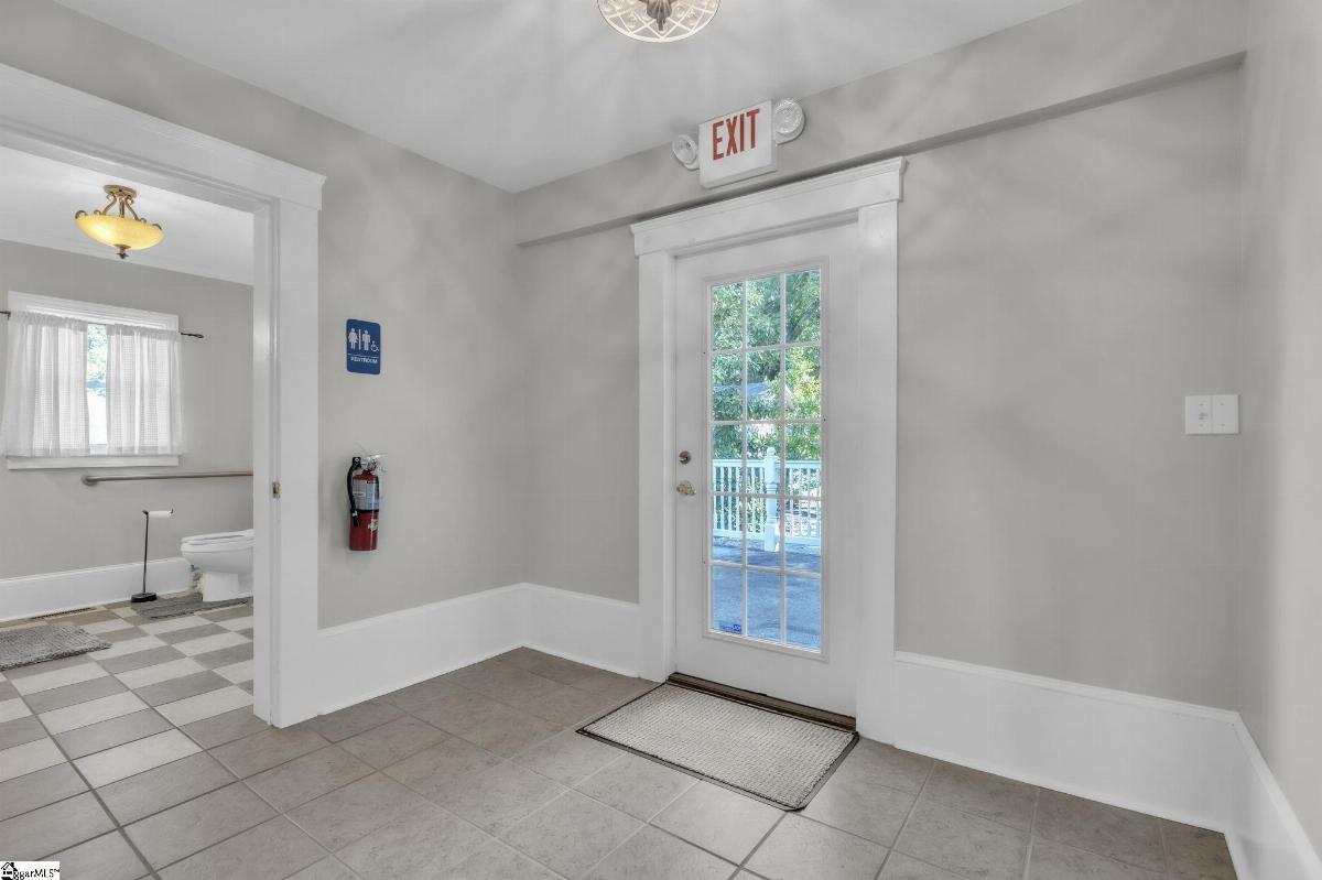 3 PRIVATE OFFICES RESTROOM 13’ X 21’ ROOM WITH FIREPLACE SUITABLE FOR CONFERENCE ROOM OR CUBICLES BREAKROOM Currently zoned CG and being utilized as a professional office, this property offers exceptional potential for a variety of business or professional uses. Prime location just steps from the vibrant shops, restaurants, and attractions of Historic Downtown Greer! This beautifully maintained property welcomes you with an impressive entry hall featuring 11-foot ceilings and stunning wood floors that continue through much of the space. The inviting living area, located just off the kitchen, includes a charming wood-burning fireplace — perfect for creating a warm and welcoming environment. Situated on nearly half an acre, the property offers ample room for outdoor gatherings or a private retreat setting.