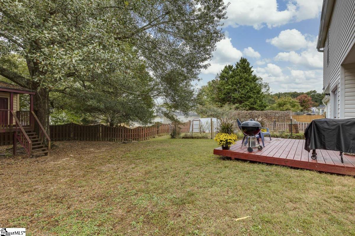 Contact info is Betty Jo Pearce for personal showing, 864-313-6472, bettyjop@joyrealestate.com. Located near the intersection of Standing Springs Road and Georgia Road, this amazing home is very convenient to 385, shopping, dining, and is within minutes of thriving downtown Simpsonville with all it has to offer. The oversized rocking chair front porch leads into a very well maintained and freshly painted home. There are also new french doors that lead to a new deck off of the breakfast room. Its' location in a quiet cul-de-sac affords a very large private fenced backyard. The backyard is separated into two areas by fencing. You have your main backyard for hosting or playing including a great playhouse. For the gardener, a separate area with raised beds is perfect for growing whatever your heart desires. The community is well established and quiet. Make your appointment today! At his incredible price, this home won't last long.
