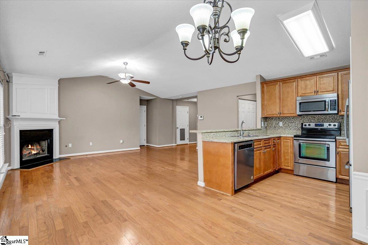 Where prime home comfort meets unmatched LOCATION! 101 Valhalla Ln. is the perfect move-in-ready home for families that will benefit from being in the epicenter of town. Directly off of Woodruff Rd. right in the heart of Simpsonville, Five Forks area. Also Just 15 minutes from Downtown Greenville. Set on one of Sparrow Point's best lots. The open living and dining combination provides the perfect canvas for furnishing opportunities for your family get togethers. The attractive and spacious master bedroom welcomes you and flows to the custom closet featuring brand new shelving and storage space. The master bathroom showcases spacious dual sinks. Well separated from the master are two additional generous sized bedrooms. The kitchen features new countertops, cabinetry and designer fixtures. The details have been thoughtfully curated from fresh paint to quality finishes. On top of the updates this house features a newly installed HVAC unit that has an energy efficient feature. Included is a high-tech security system with cameras and doorbell view, as well as a high quality storage safe. The back opens to a nice sized patio for bbq's and the seating overlooks one the best backyards in the neighborhood. The neighborhood itself offers wonderful amenities such as pool, playground, pickleball and tennis courts. Zoned for very desirable schools and in a highly sought after location that is convenient to everything upstate SC has to offer! Listed by Chase Green (864) 516-4186 (Agent ID: 134651 ) With BHHS C. Dan Joyner Realtors. (Office ID : 248)