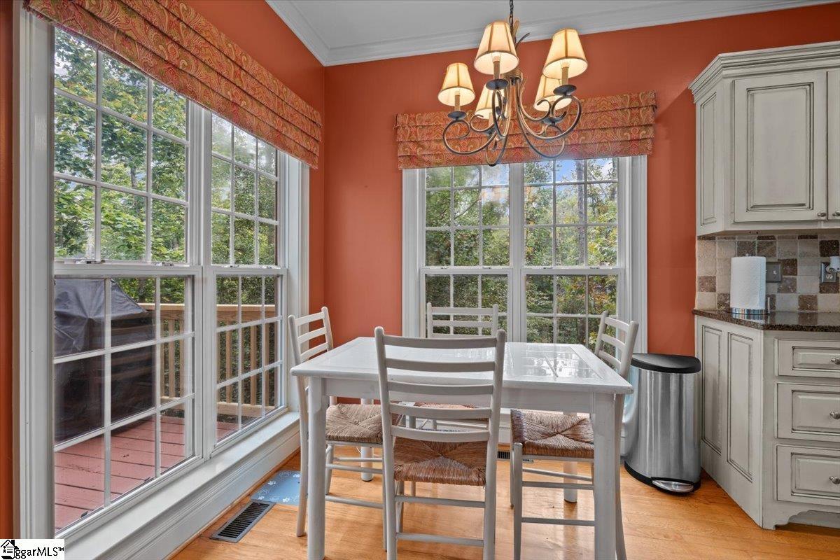 BEAUTIFUL BASEMENT HOME PRICED TO SELL! NEW ARCHITECTURAL ROOF in 2025! Discover 112 Dunrobin Lane -a spacious family home on an oversized lot with a main-floor primary suite AND main-floor guest suite! Upstairs you'll find two more bedrooms plus a spacious flex room.This desirable floor plan also includes vaulted ceilings, crown molding, wainscoting and beautiful hardwood floors! Check out the FULL BASEMENT with the WORKSHOP and WORK-OUT ROOM: enjoy endless possibilities from a media room or play space, a home gym, home office, or extra storage downstairs. Enjoy peace & quiet on the deck while overlooking the large, wooded backyard. In the heart of Five Forks, you'll appreciate the circular driveway, pool community amenities, and top-rated schools — the perfect blend of comfort, convenience, and community, all at a fabulous price! Welcome to Highland Creek, where your new home awaits you.