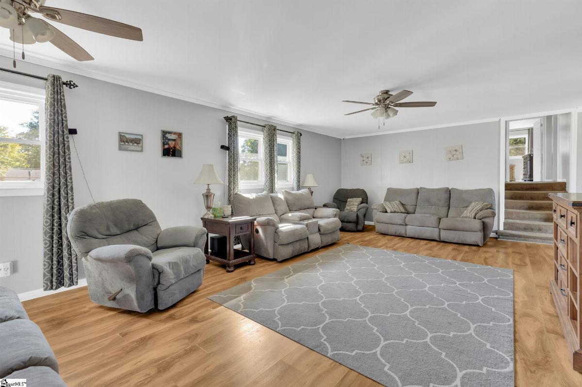 Feel free to reach out to Stephanie Burrows, the official listing agent of this property with any questions or to schedule a private tour. Call or text 224.639.7653. Set on .67 acres, flat and fenced (2020), this 5 bedroom, 2 bathroom tri/split-level delivers 2,255 sq ft of flexible living, a finished lower level with exterior access—ideal for letting pets in and out, entertaining, or stepping right out to work in the yard—and an unfinished basement area perfect for storage (skip the storage unit!). Just off the kitchen, an informal sitting/breakfast area suits morning coffee and quick dinners. The floor plan flows naturally into the great room, so you won’t miss a moment of family shows or movies while making snacks and you’ll stay connected to the big game or quiet conversations while entertaining as appetizers and meals come together. A large dining room easily handles big family gatherings and holidays. The kitchen is anchored by an exceptional, seller-designed pantry for clarity and convenience—always know what you have vs. what you need; the freezer in the pantry remains (as-is), and the stove and refrigerator are ~3 months old. Main-level laundry adds everyday ease. Upstairs offers a spacious primary bedroom plus two additional bedrooms; the remaining bedrooms are on the lower level, providing separation and options for multi-generational living, guests, hobbies, and work. The lower level shines for movie nights and game days with a wood-burning fireplace to take the chill off cool evenings ~ wanting s'mores but it's raining? Here you go ~ create some memories with indoor camping! Outside, enjoy a 30’ round above-ground pool with surrounding deck (deck has electric; all pool equipment/chemicals convey), a lifetime play yard, and two sheds—a 12×24 with electric for projects and charging tools, and a 12×16 for lawn gear and storage. Big-ticket items are done: roof (2017), septic drainage field (2017), HVAC (2021), all regular windows replaced (2021), plus new front windows, two basement windows, and a new patio door ~2 months ago. NO HOA! The generous driveway accommodates camper/boat/extra vehicles. Sellers have worked to maintain this beautiful property, landscaped and added beautiful plantings. The yard is treated with both pre-emergent and post-emergent. The water fountain in the front yard conveys with the property and there are also Govee Strip Lights and timer installed that stay with the property. Just minutes to downtown Five Forks for shopping and dining, with a short distance to downtown Simpsonville, GSP International Airport, and downtown Greenville. Thoughtfully updated and well maintained, this home blends great flow, flexible spaces, smart storage, and ready-made outdoor fun for comfortable daily living.