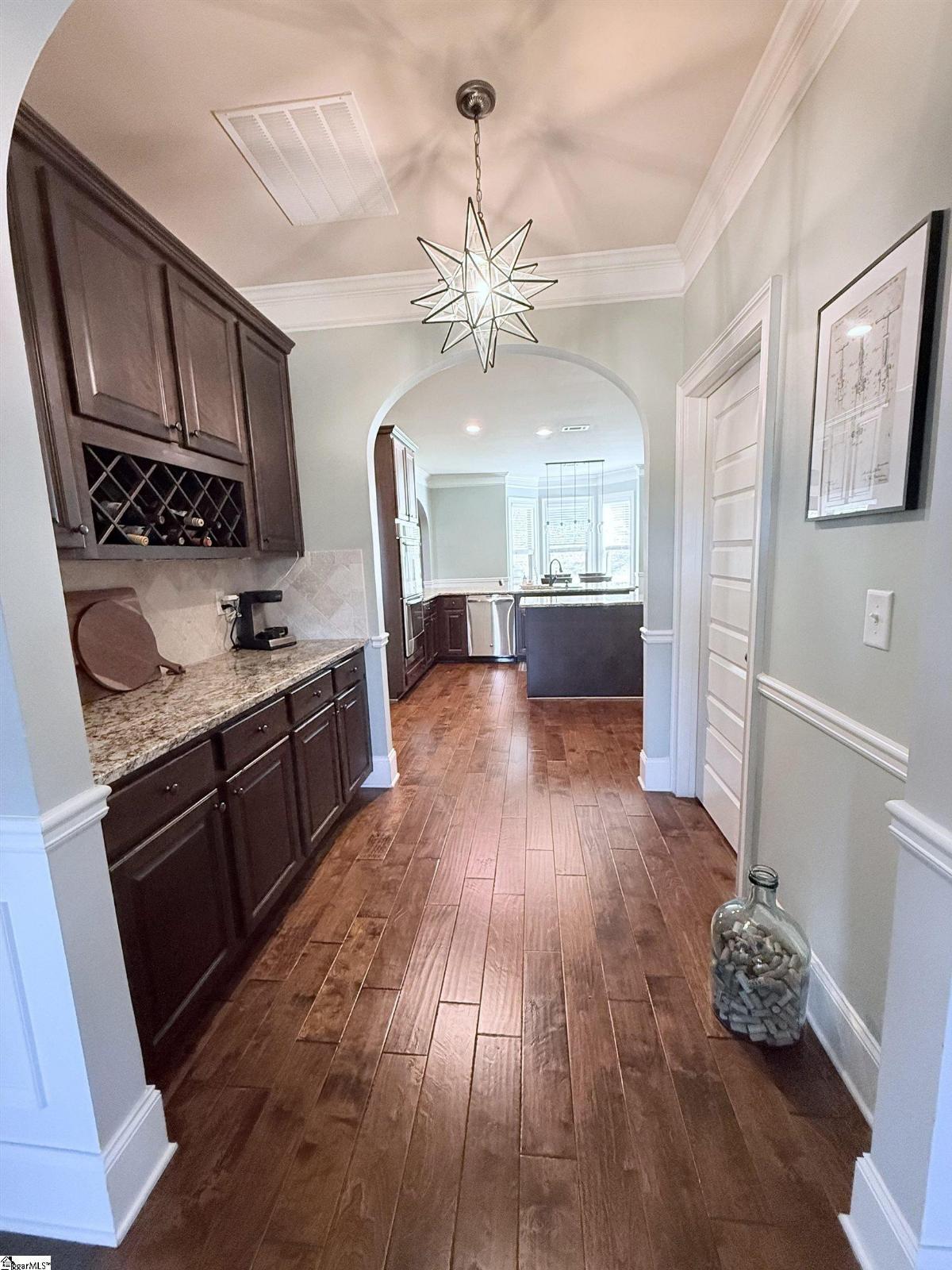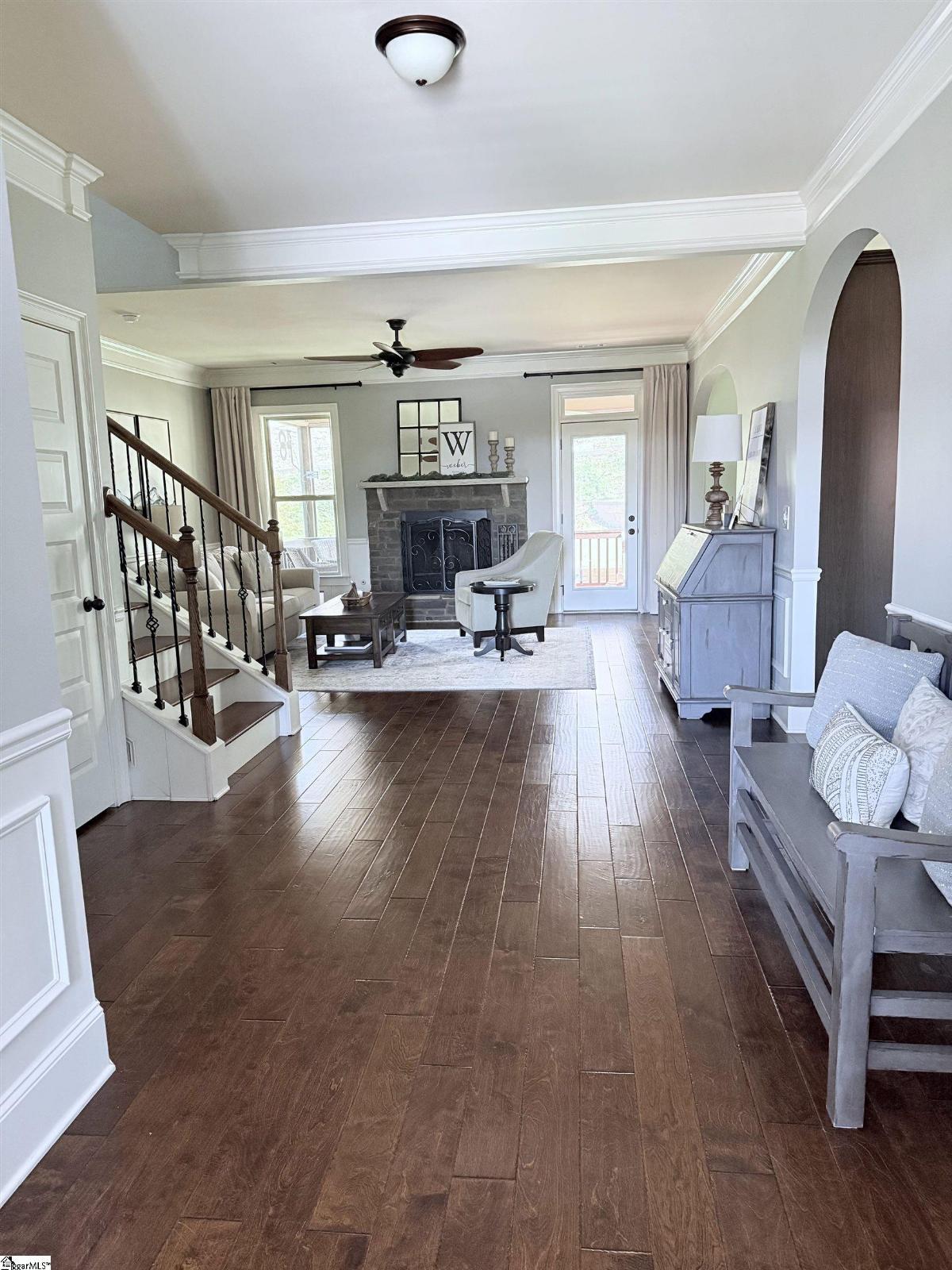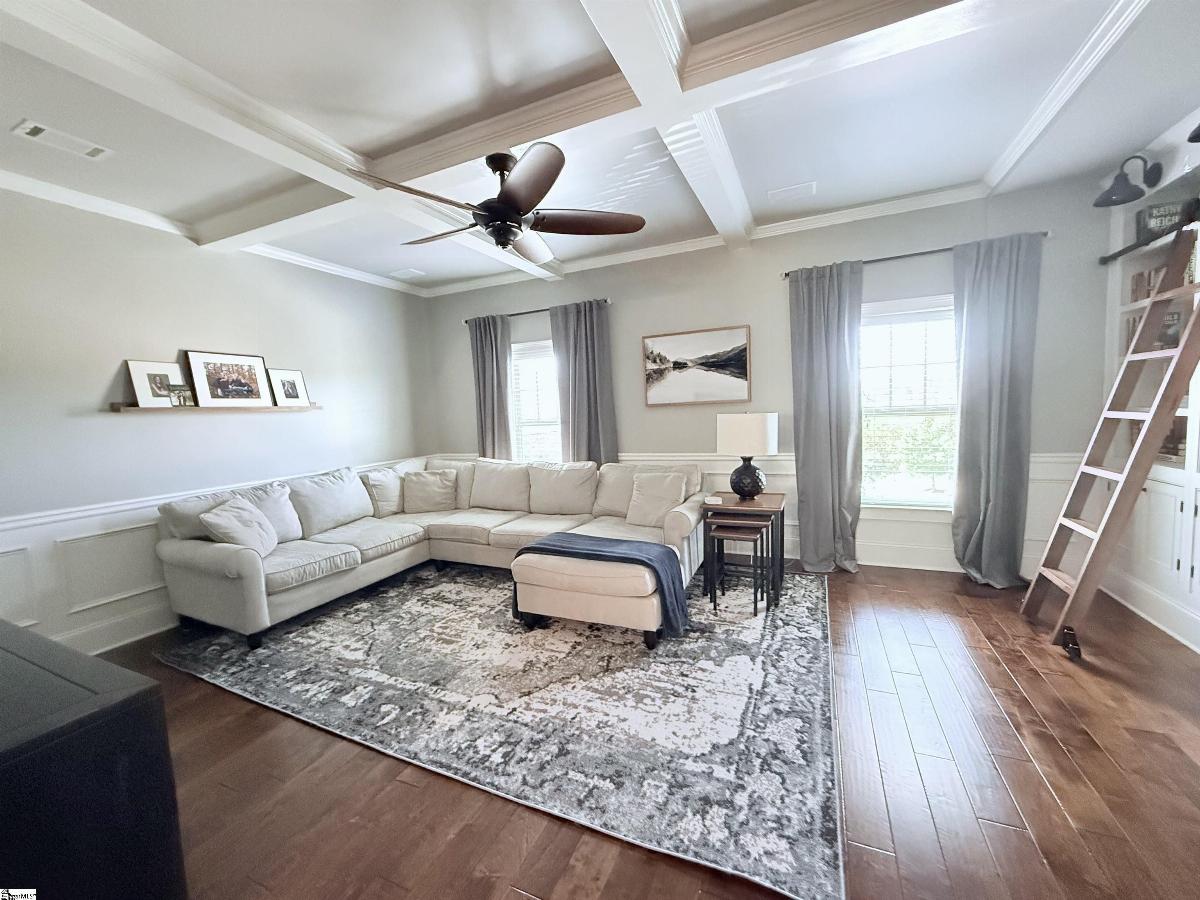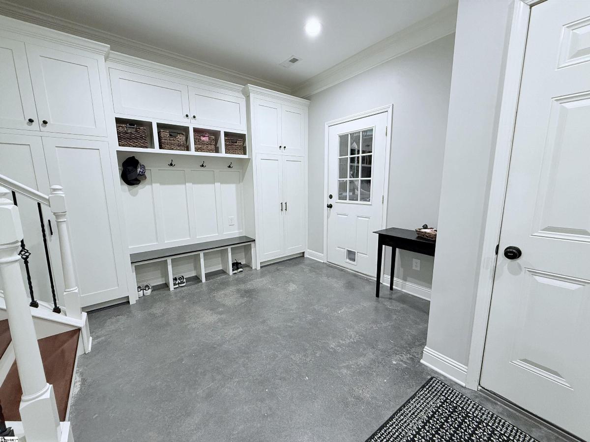 Stunning Custom Home with Signature Architectural Details, Main-Floor Primary Suite & Resort-Style Community Amenities Welcome to your dream home! This beautifully crafted residence provides an expansive layout, luxurious upgrades, and timeless architectural details throughout. With signature arches, 9-foot ceilings, coffered and vaulted ceilings in every bedroom, and a flowing open floor plan, every space in this home feels bright, spacious, and thoughtfully designed. The entire first floor features gleaming hardwood floors, including the stairway and loft above. At the heart of the home, the gourmet kitchen is a chef’s dream—complete with granite countertops, tile backsplash, large center island, a butler’s pantry, upgraded stainless steel appliances, and a sunny bay window breakfast nook. A double oven setup with induction cooktop (with gas available) and a walk-in pantry with custom-built storage makes entertaining and everyday living effortless. Unwind in the cozy den centered around a wood-burning masonry fireplace with a gas starter. The main floor also boasts a luxurious primary suite with a vaulted tray ceiling, bay window sitting area, expansive walk-in closet with custom organizers, and a fully remodeled spa-style bathroom. Enjoy the freestanding tub, oversized frameless glass shower, dual vanities, and private water closet. Upstairs, each generously sized bedroom includes vaulted ceilings, walk-in closets, and private or Jack-and-Jill baths. Four flexible spaces throughout the main floor and second level allow you to tailor the home to your lifestyle—whether that means a den, family room, home office, formal dining room, playroom, creative studio or media room. Designer touches abound, including a full presidential trim package featuring crown molding, box molding, chair rails, and custom window casings. The fully insulated basement is already equipped with electrical, plumbing, and HVAC—ready for future expansion. It currently includes a state-of-the-art home gym with integrated sound system, dual TVs, and a half bath (with plumbing installed for an easy conversion to a full bath). The unfinished section offers a large workshop and ample storage, or the perfect blank slate to finish to your exact specifications. Practical features include a large custom mudroom off the garage with built-in cabinetry, and a family room wired for surround sound with custom built-ins and a rolling library ladder for added character and charm. Outdoor living is just as impressive. Enjoy the beautifully landscaped yard with mature trees and full irrigation, relax on the large screened-in porch, or fire up the grill on the adjacent deck. A brand-new roof was installed in August 2025, offering peace of mind for years to come. Located in the highly sought-after community of Tuscany Falls, just minutes away from the booming Five Forks and Simpsonville communities. residents enjoy access to a resort-style garden pool with lazy river and a grand two-story clubhouse—perfect for social events or family fun. This home combines elegance, function, and comfort in every square foot. Don’t miss the opportunity to make this exceptional property your forever home!