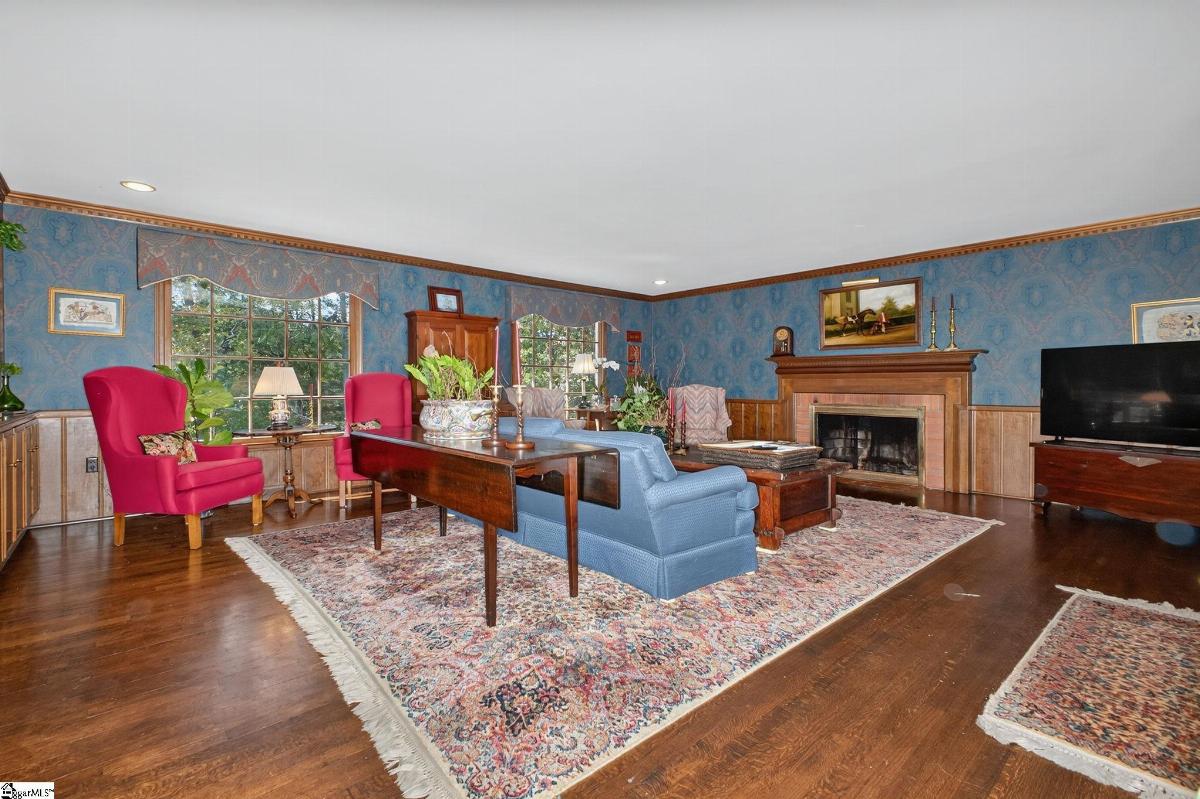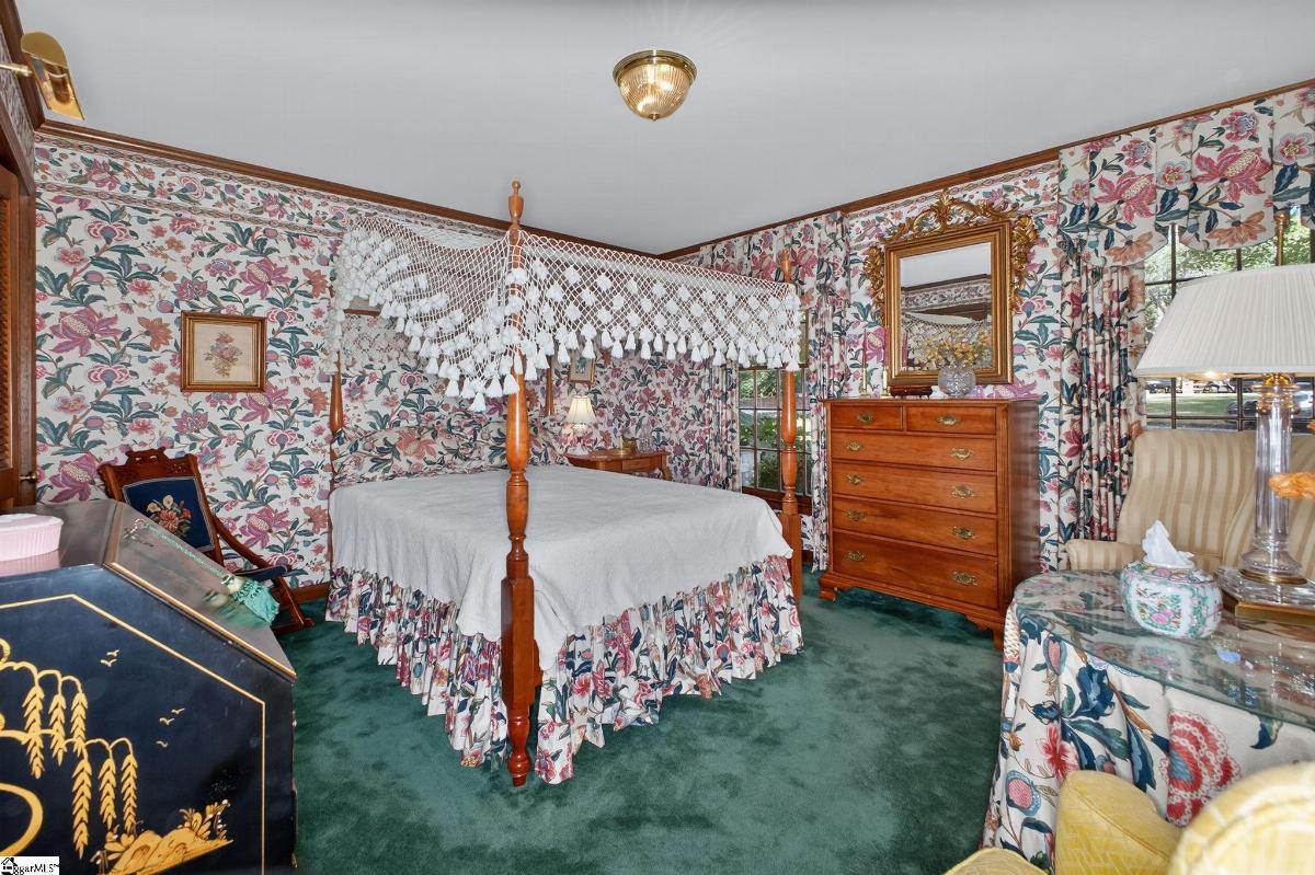 Nestled along the 16th hole of the prestigious Holly Tree golf course, this timeless 6-bedroom, 5-bath home exudes warmth, space, and traditional charm. Lovingly maintained by its original owners, the property offers an ideal blend of comfort and functionality for today’s lifestyle. The main level features a spacious kitchen with abundant cabinetry, a breakfast area, and a generous den with custom built-ins and a cozy fireplace—perfect for gatherings. A formal living room and elegant dining room provide additional entertaining spaces, while a main-floor guest suite with a full bath offers flexibility for a home office or private retreat. Upstairs, the primary suite boasts two large closets and an en suite bath. Three additional bedrooms and two full bathrooms provide ample room for family and guests. The expansive basement is a true bonus, featuring a built-in bar, an additional bedroom and full bath, and a large laundry room—making it the perfect spot for recreation, hosting, or multi-generational living. Step outside to the porch and take in the peaceful views of the 16th fairway—an ideal place to relax and unwind. This beautiful Honey Horn home offers classic design, generous living spaces, and an unbeatable golf course setting—all in one of Simpsonville’s most desirable communities.