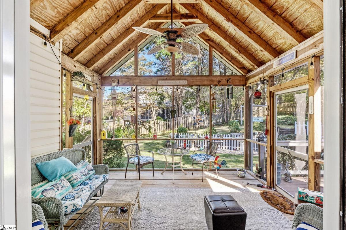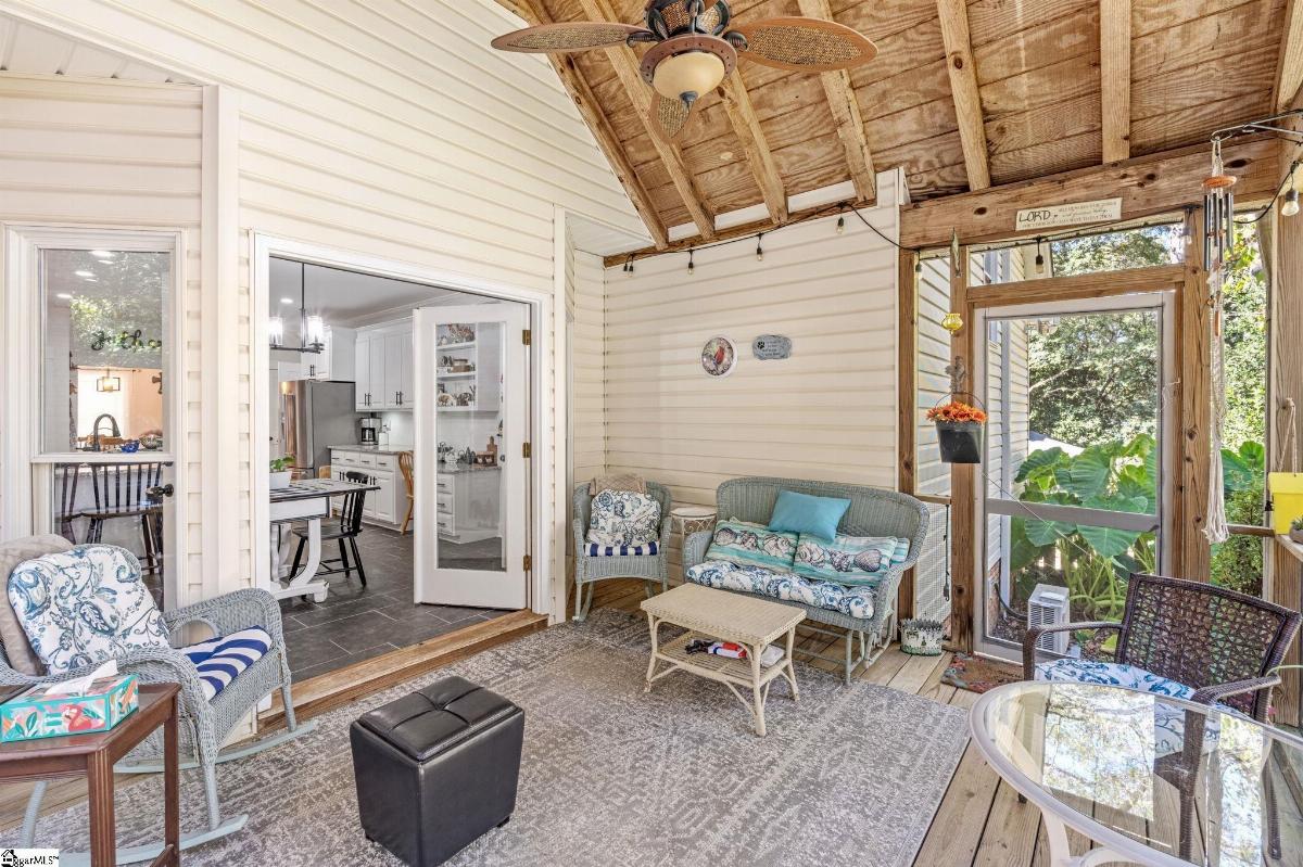 Welcome to 218 Deer Spring Lane, a beautifully maintained and tastefully renovated home nestled in one of Simpsonville’s most sought-after communities, Neely Farm. From the moment you arrive, the inviting front porch and timeless curb appeal set the tone for what awaits inside. Step through the front door into a bright, vaulted foyer featuring gleaming hardwood floors and abundant natural light. The spacious dining room offers an ideal setting for gatherings and flows seamlessly into a chef-inspired kitchen complete with granite countertops, double wall ovens, slate tile flooring, and not one—but two large walk-in pantries. The kitchen has been refreshed with modern hardware, freshly painted cabinetry, soft-close doors, upgraded LED lighting, and a sleek touchless faucet. The adjoining breakfast area overlooks a serene, tree-lined backyard and opens to a covered porch and expansive deck, perfect for grilling, entertaining, or simply enjoying the peaceful outdoor setting. The main-level living room offers a sense of warmth and grandeur, with vaulted ceilings, recessed lighting, beautiful crown molding throughout the first floor, and a newly upgraded remote-operated gas fireplace as the focal point. The primary suite, also on the main floor, has been fully remodeled to include a luxurious spa-like bath featuring a heated floor, soaker tub, custom walk-in shower, and modern double vanity, along with a custom-designed closet (2025). Two additional bedrooms share a convenient Jack-and-Jill bathroom, each with generous space and style. Upstairs, you’ll find two more spacious bedrooms with double closets and an updated full bath — ideal for family, guests, or a home office setup. Just off the kitchen, stairs lead to the large flex/game room located above the garage. This versatile space is perfect for a media room, home gym, or play area and now includes a dedicated HVAC system for year-round comfort. Additional upgrades include a tankless water heater (2023), new ductwork, programmable thermostat (2025), exterior lighting updates, and freshly painted trim and interior woodwork. Every detail has been carefully maintained to ensure lasting comfort and quality. With a side-entry two-car garage, ample parking, and access to the exceptional amenities that make Neely Farm so desirable—including a clubhouse, pool, tennis courts, playgrounds, and a full 9-hole disc golf course—this neighborhood offers something for everyone. Residents enjoy an active community lifestyle with neighborhood clubs, monthly social events, and a popular summer swim team, all contributing to the warm and welcoming Neely Farm experience. Come see for yourself why homes in Neely Farm are so highly desired—218 Deer Spring Lane offers space, style, and updates you’ll appreciate from the moment you walk in. Seller is a SC Licensed Real Estate Agent.