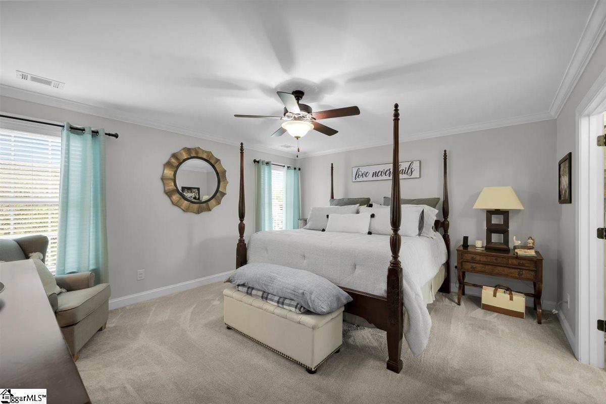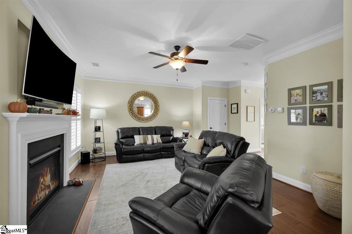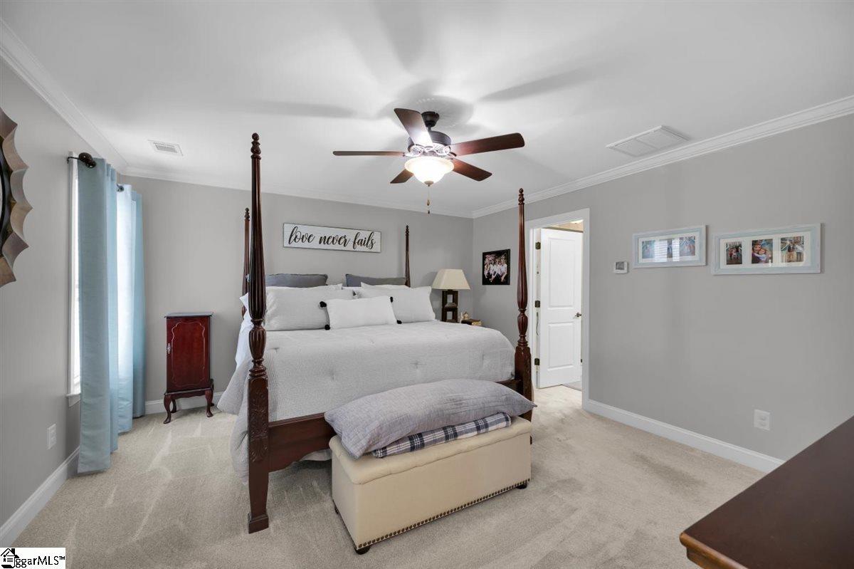 Discover this beautifully updated 3-bedroom home with a bonus room, ideally located in the sought after neighborhood of The Cottages at Harrison Bridge. This residence features an amazing layout. Downstairs you will find a spacious great room, kitchen, and a half bath. Upstairs has all bedrooms, bonus room, 2 full baths, and a large laundry area. Washer and dryer convey along with all the kitchen appliances. Recent updates include a brand new roof (2023), a remodeled primary bathroom (2023), and a freshly painted interior and exterior (2023). Enjoy the elegance of new engineered hardwood flooring and carpet installed in 2021, along with stylish plantation shutters added in 2022. All appliances are just 4 years old, ensuring modern convenience . Nestled in a desirable neighborhood, this home showcases stunning craftsman architecture and is only 20 minutes from downtown Greenville and 10 minutes from downtown Simpsonville. With easy access to Fairview Road, you'll be close to a variety of shopping and amenities. This home has been loved and meticulously taken care of. Don't miss your chance to make this house your home!!