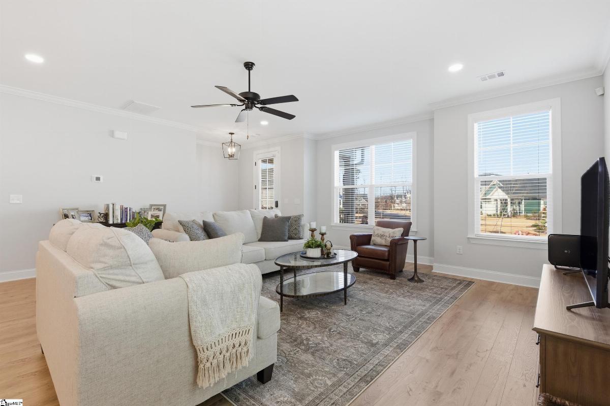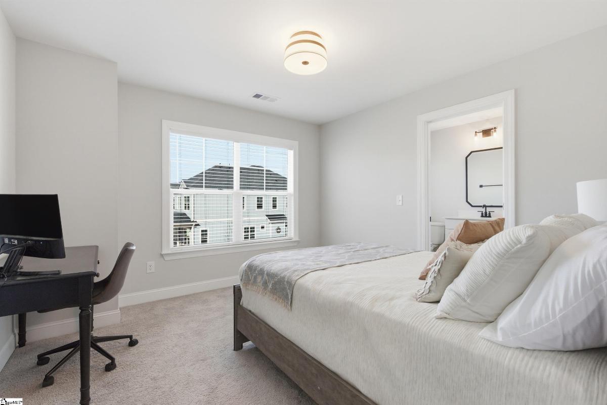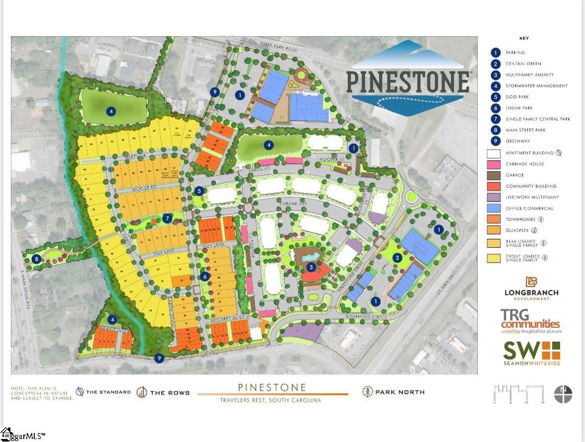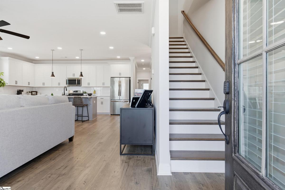Experience the perfection of luxury and location in this exceptional townhouse within the desirable Pinestone community. Built recently, this home exudes modern craftsmanship and a thoughtful layout designed for today's living. The main level immediately impresses with an open floor plan and rich hardwood floors leading into a magnificent great room. The high-end kitchen is a chef's delight, equipped with top-tier quartz surfaces, a gas cooking range, and an abundance of smart storage, with a dedicated dining area. The main-level primary suite is a private haven, offering a restful escape with a generous walk-in closet and a spa-like ensuite featuring a striking tile shower. Upstairs, the attention to detail continues with large secondary bedrooms, each boasting the rare and convenient feature of its own dedicated ensuite bathroom. The upstairs loft provides crucial flexible space or cozy den. Outdoor living is a breeze with both a covered front porch and a covered rear porch, plus a private rear patio perfect for quiet relaxation. The true appeal of Pinestone is its location: enjoy the ultimate convenience of being of the the few walking distance communities from downtown Travelers Rest! Best of all, the community features a dedicated walking trail that provides direct, easy access to Main Street, putting all the local shops, dining, and the expansive Swamp Rabbit Trail at your fingertips. Complete with a valuable 2-car detached garage and just a short drive to downtown Greenville, this stylish and convenient home is waiting for you.