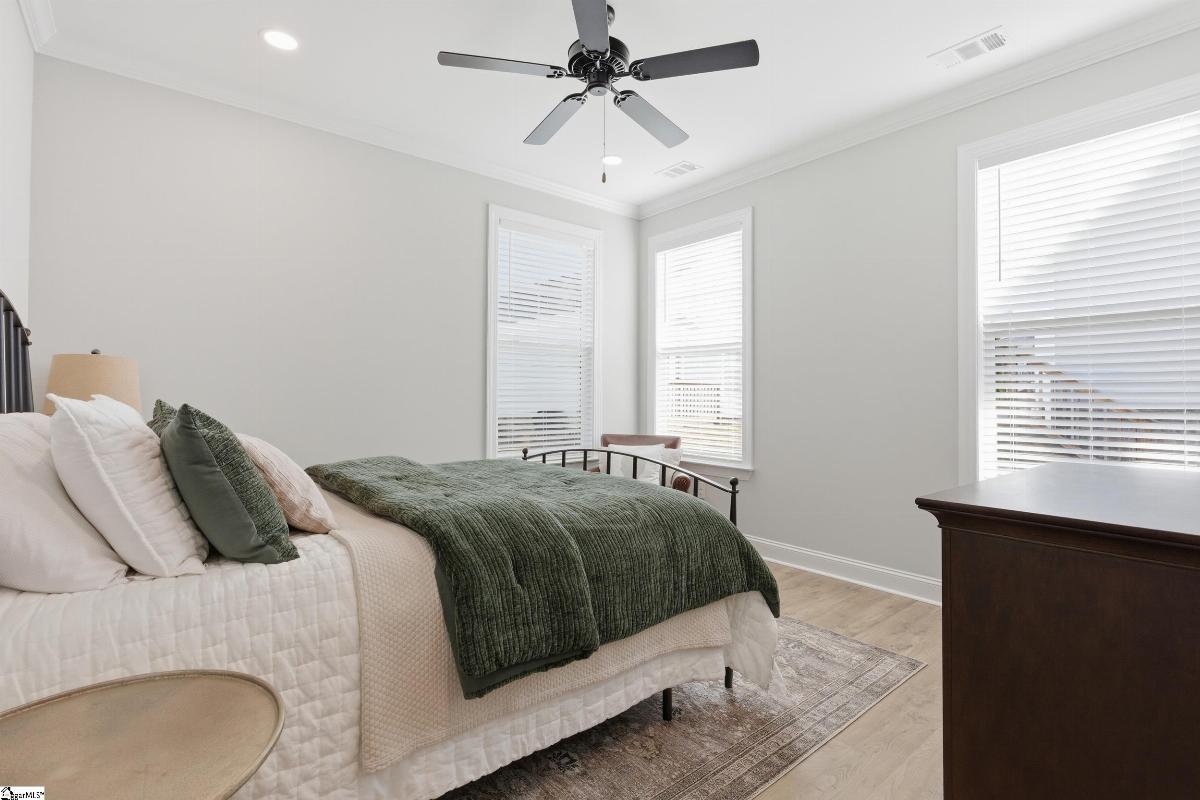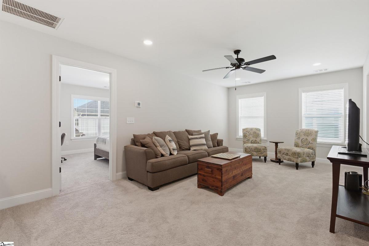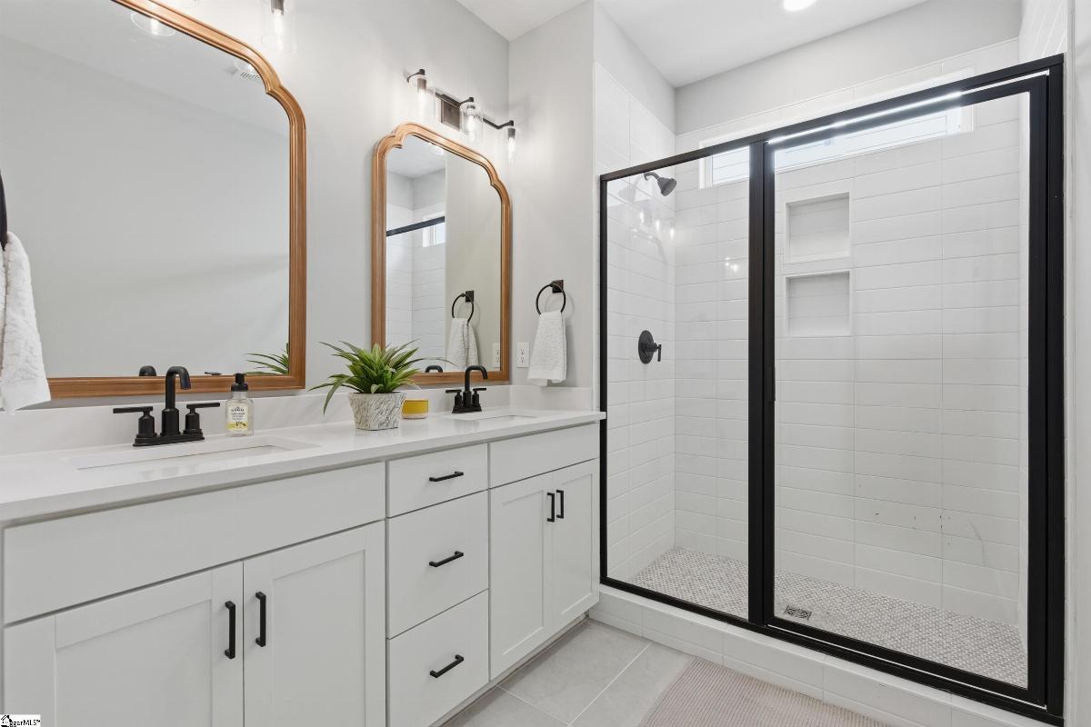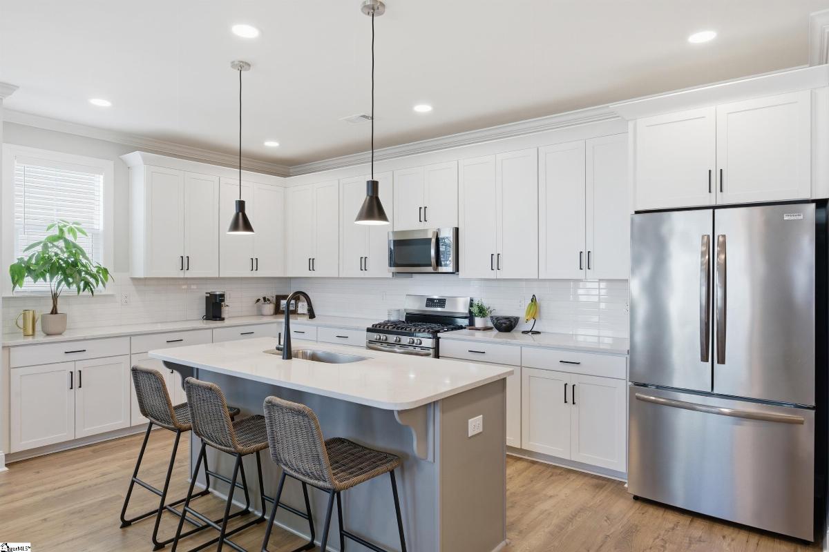 Experience the perfection of luxury and location in this exceptional townhouse within the desirable Pinestone community. Built recently, this home exudes modern craftsmanship and a thoughtful layout designed for today's living. The main level immediately impresses with an open floor plan and rich hardwood floors leading into a magnificent great room. The high-end kitchen is a chef's delight, equipped with top-tier quartz surfaces, a gas cooking range, and an abundance of smart storage, with a dedicated dining area. The main-level primary suite is a private haven, offering a restful escape with a generous walk-in closet and a spa-like ensuite featuring a striking tile shower. Upstairs, the attention to detail continues with large secondary bedrooms, each boasting the rare and convenient feature of its own dedicated ensuite bathroom. The upstairs loft provides crucial flexible space or cozy den. Outdoor living is a breeze with both a covered front porch and a covered rear porch, plus a private rear patio perfect for quiet relaxation. The true appeal of Pinestone is its location: enjoy the ultimate convenience of being of the the few walking distance communities from downtown Travelers Rest! Best of all, the community features a dedicated walking trail that provides direct, easy access to Main Street, putting all the local shops, dining, and the expansive Swamp Rabbit Trail at your fingertips. Complete with a valuable 2-car detached garage and just a short drive to downtown Greenville, this stylish and convenient home is waiting for you.