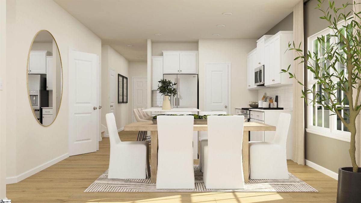 The Edgefield floorplan at Spring Park community in Travelers Rest, South Carolina, offers a thoughtfully designed two-story layout that blends comfort, functionality, and modern living. With approximately 1,931 square feet, it includes three bedrooms, two and a half bathrooms, and a one-car garage. A standout feature is the first-floor owner’s suite, tucked privately at the back of the home with a walk-in closet and en-suite bath. The main level also showcases an open-concept living area that connects the living room, kitchen, dining space, and a rear patio—ideal for entertaining or family gatherings. Upstairs, two secondary bedrooms share the space with a versatile loft that can function as an office, media room, or play area. Located just north of Greenville, the Spring Park community offers easy access to shopping, dining, and outdoor recreation like the Swamp Rabbit Trail, along with neighborhood features such as a dog park, fostering a vibrant and connected lifestyle.