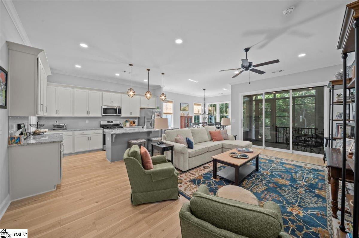 Call Kim Guest for a private showing! 864-918-0066. Elegant Craftsman Living in the Heart of Travelers Rest Experience the perfect blend of luxury and low-maintenance living in this beautifully appointed newer Craftsman home—just a short walk from the charming shops, restaurants, and the Swamp Rabbit Trail of downtown Travelers Rest. Thoughtfully designed with an open floor plan and high-end finishes, this home offers effortless elegance and everyday comfort. The main level features a spacious primary suite with a spa-inspired bathroom and a generous guest room, while upstairs you’ll find two additional bedrooms and a versatile loft bonus area ideal for a media room, office, or play space. Large windows frame serene views of the surrounding trees, creating a peaceful backdrop throughout the home. Step outside to the screened porch—expertly added by the seller—to enjoy private outdoor living year-round. With its timeless Craftsman character, modern amenities, and prime walkable location, this move-in-ready home delivers the best of Travelers Rest living in style.