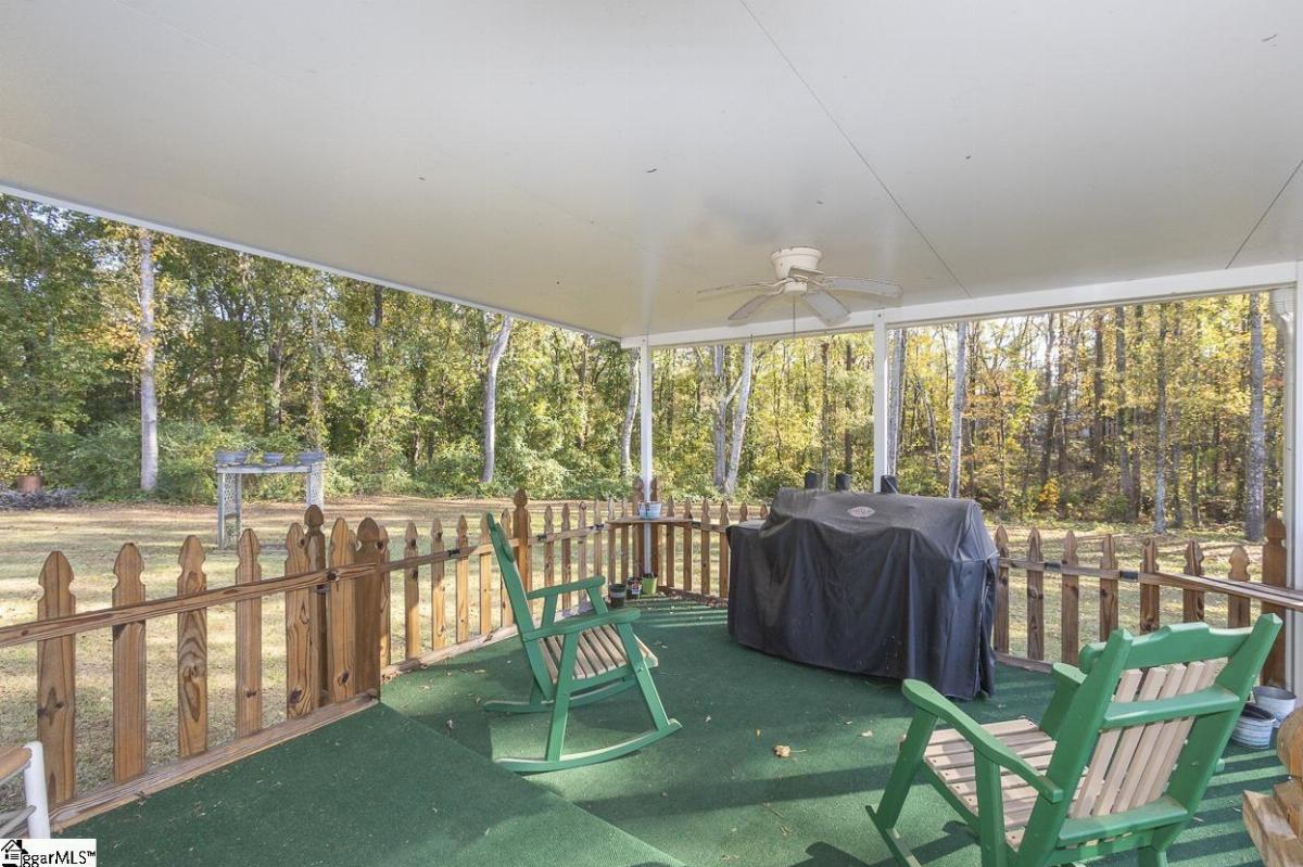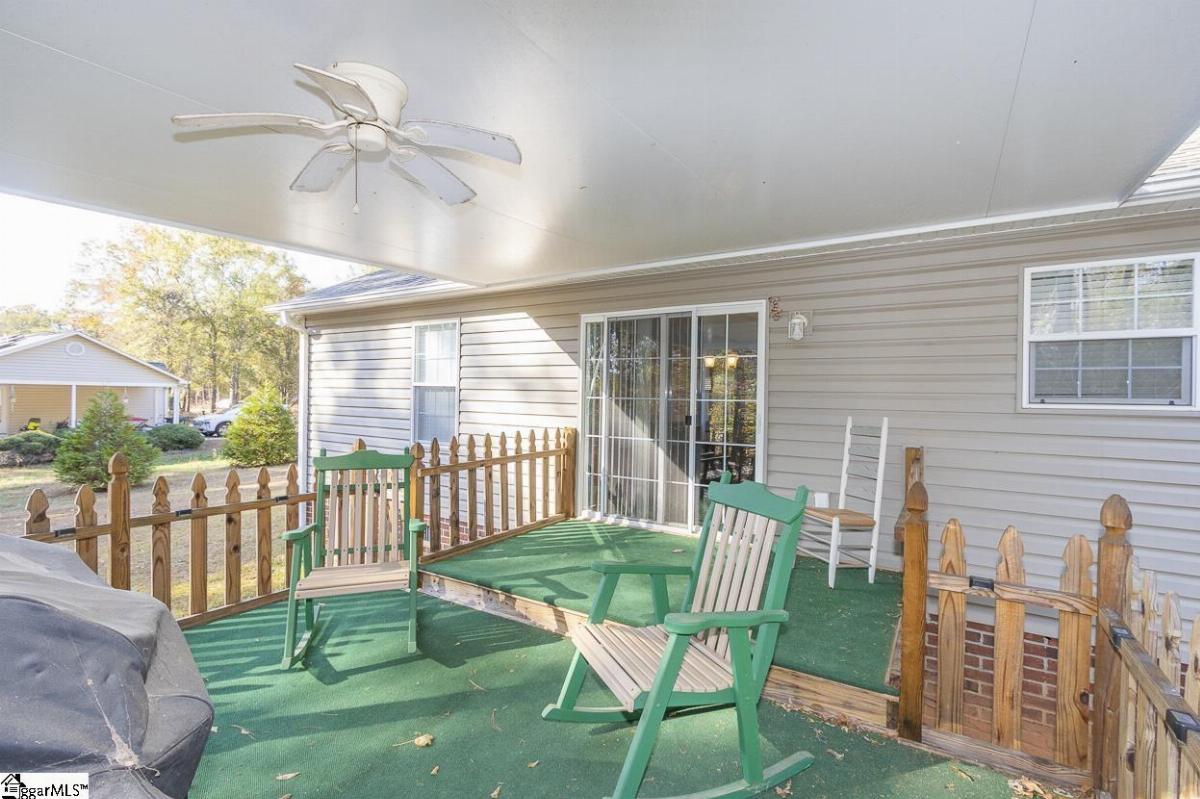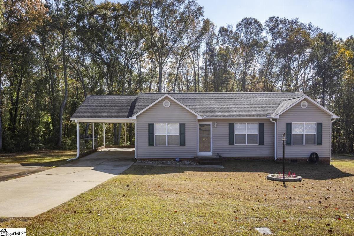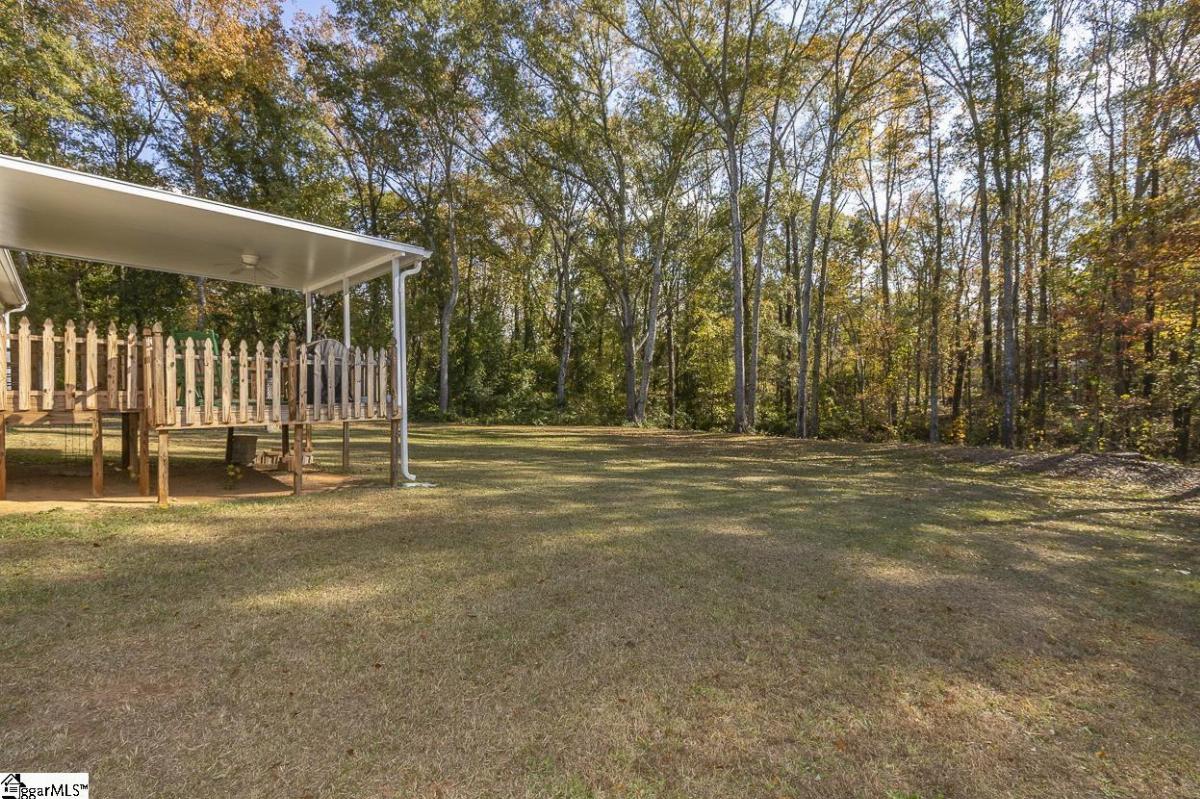 Property location qualifies for 100% USDA Rural Housing Loan financing. Single level home with no HOA nor fees and situated within a wooded and established neighborhood. Easy to maintain exerior finishes of vinyl and brick with mature landscaping. Covered parking is a combination of attached carport and detached garage. Detached building at ~600' and is finished with concrete flooring and electricity; perfect for a workshop or storage. At almost 1 acre lot the WOW is when you walk to backyard. Serene is the word with the expanse of the open grassed area, grand trees, a natural area down to the creek. Entry to the home brings you to the living room and is open to the eat in / dining area. Galley style kitchen where all appliances remain and extra storage shelved pantry. Laundry closet and side entry access door to carport complete this area. Ever popular split bedroom floorplan; with Primary featuring a walk in closet and private bathroom with newer walk in shower. Two secondary bedrooms share a hallway located full bathroom. From dining area one will access the rear covered porch; perfect for grilling and dining. Country setting property is close to south side Anderson shopping, District 3 schools and vast number of employers.