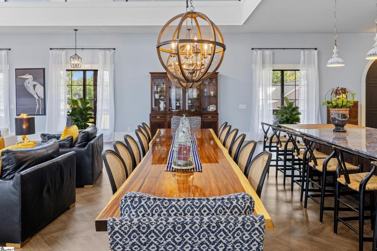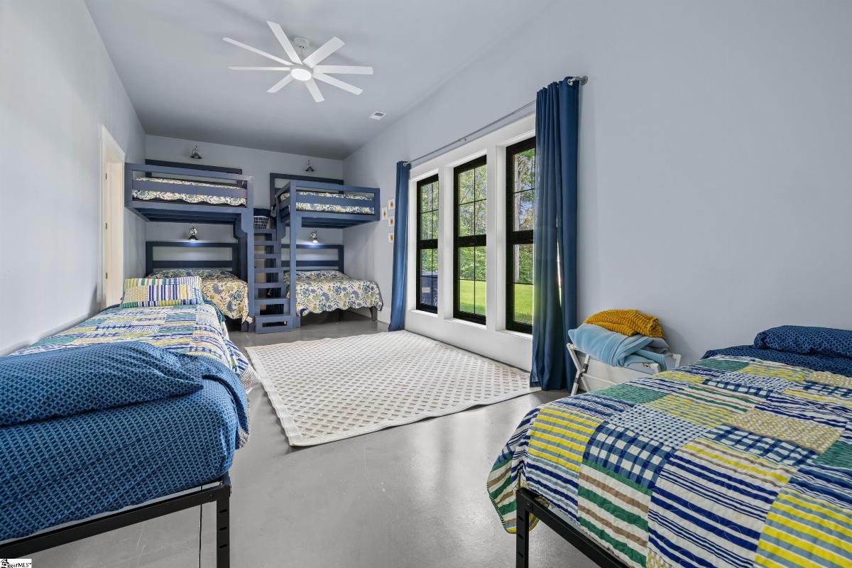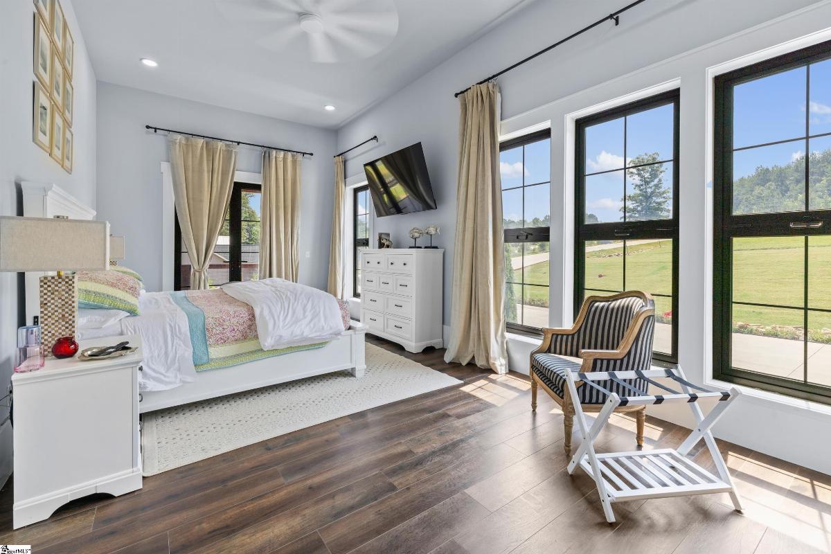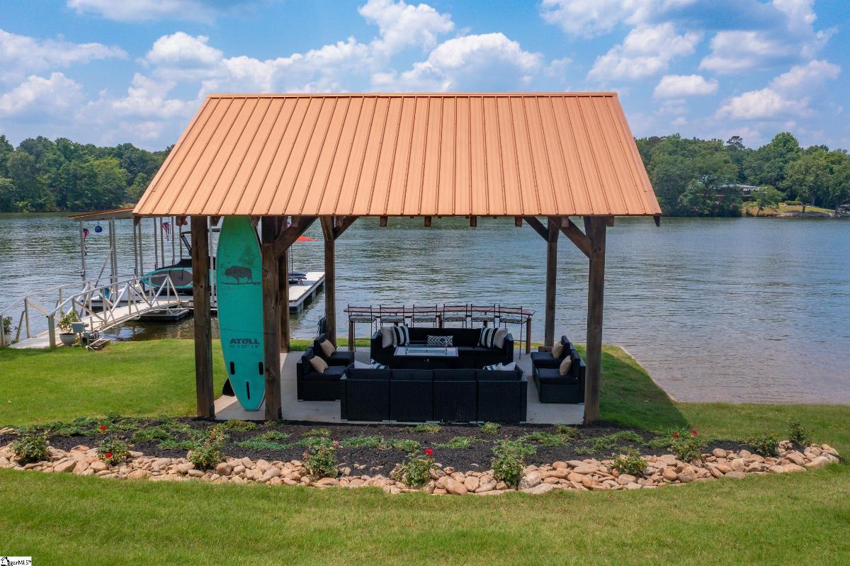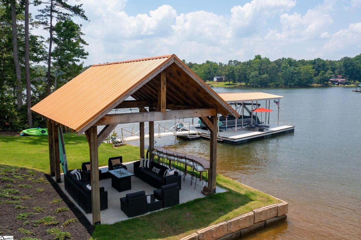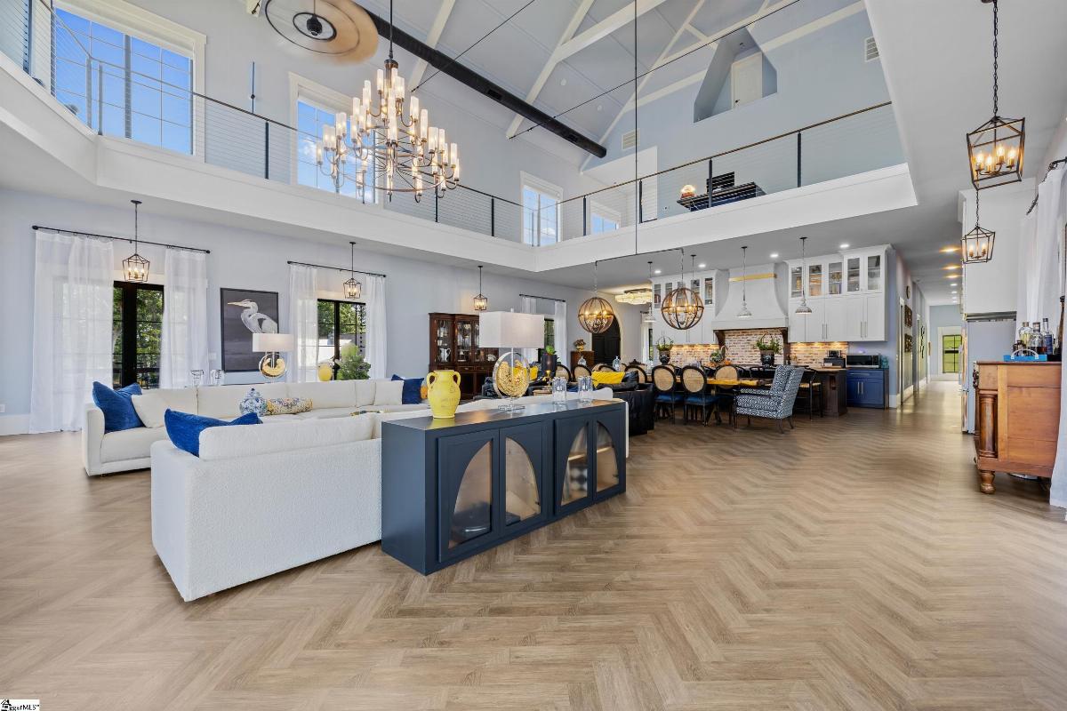 Experience the pinnacle of lakeside luxury at 126 Clearview Drive, the crown jewel of Lake Secession. Spanning 12,000 square feet and situated on 8 pristine acres, this one-of-a-kind estate seamlessly blends contemporary farmhouse elegance, traditional charm, and barndominium flair into a masterpiece of design and comfort. From the moment you pass the storybook white barn and fenced garden, anticipation builds as the grandeur of the home comes into view—so impressive you might miss the lake itself at first glance. Greeted by expansive wraparound porches and a 10-foot arched steel door, the entrance sets the tone for a truly unforgettable interior. Inside, you’re welcomed by 48-foot vaulted ceilings, rich global influences, and artistically curated colors that evoke emotion in every corner. The open-concept living and dining areas are framed by 5-foot-wide catwalks that overlook the main space and provide unmatched sunset views over the 6.5-mile lake. The custom-designed kitchen features high-end, beautifully colored appliances and a 22-foot island that mirrors the handcrafted dining table below unforgettable statement lighting. A full-service coffee bar in the primary suite adds luxury to your morning routine, while a private deck invites serene sunrises and afternoon sunbathing. The primary bath is a work of art, boasting dual water closets (yes, a urinal included!) and a European-inspired bathing room with a stunning blue soaking tub. A massive walk-in closet with a private washer and dryer completes the owner's wing. With 9 bedrooms and 10 bathrooms, the home is ideal for grand entertaining or multi-generational living. The bunkroom alone sleeps 8 with built-in full-size bunks, allowing the entire home to sleep up to 30 guests comfortably. Outside, the 4-car garage opens to an oversized parking area, thoughtfully designed with pickleball potential. Energy efficiency meets architectural excellence with resort-style windows and doors, high-performance insulation, and a state-of-the-art engineered plumbing system. Plus, the interior structure is completely free of load-bearing walls, offering endless opportunities for redesign or expansion. The estate includes nearly 2 acres of direct lakefront property, plus an additional 6-acre lot just steps away—ideal for future development or added privacy. Furnishings and equipment may be negotiated separately. If you’re searching for a lakefront estate that redefines South Carolina luxury, 126 Clearview Drive stands in a class of its own.