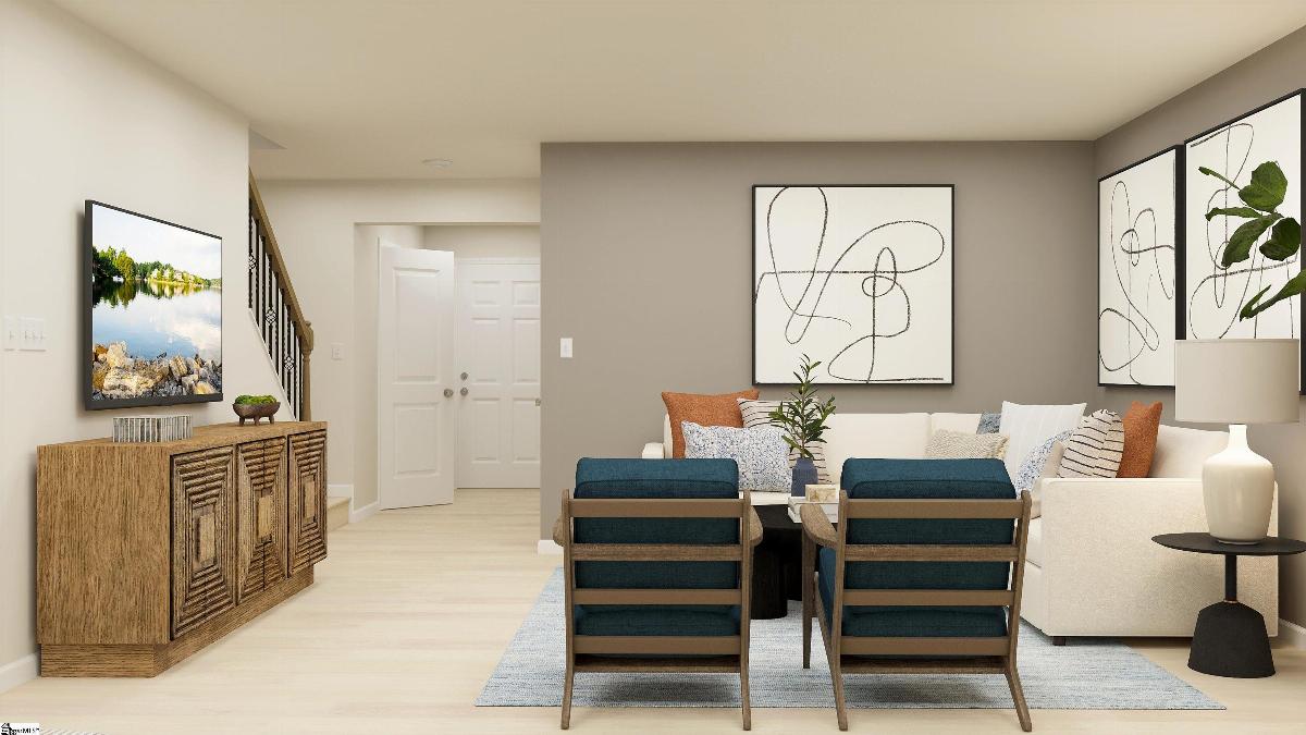 The Chestnut floorplan at The Maple in Inman, SC. We are excited to introduce you to the Chestnut Floorplan – a delightful 3-bedroom, 2.5-bathroom, 1423 square foot, 2-story townhouse that epitomizes modern craftsman style living. Upon entering, you'll be greeted by beautiful crisp white shaker cabinets, a stylish tile backsplash, and stainless steel appliances, including a gas stove. The large quartz island is perfect for gathering with family and friends, making it an ideal spot for food, fun, and lively interaction. The open concept design ensures that entertaining is a breeze, as the kitchen seamlessly flows into the breakfast room and spacious great room. Imagine sipping your morning coffee on your back covered patio, enjoying the tranquility of your new home. Upstairs, you'll find a generous master bedroom with a walk-in shower en suite and a tankless gas water heater. Additionally, this charming home offers two other bedrooms, a full bath, and a convenient laundry room. It's ideal for families seeking a peaceful neighborhood with convenient connections to Greenville and Spartanburg.