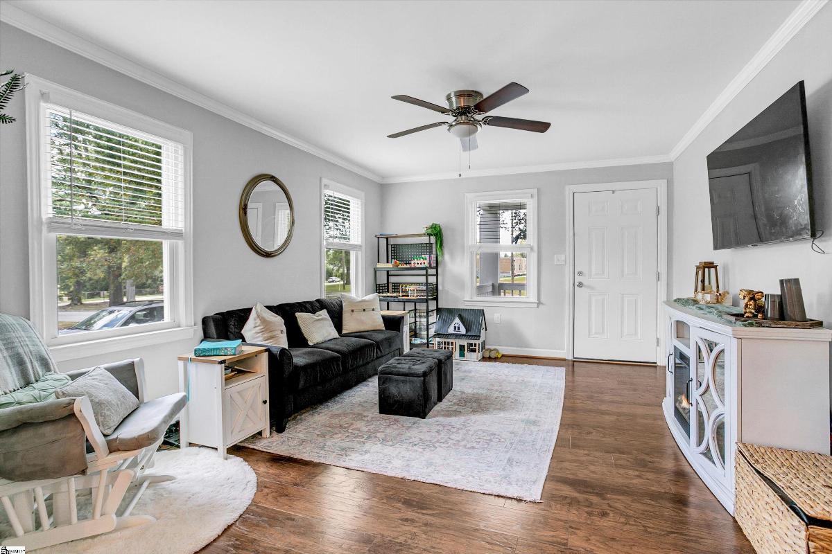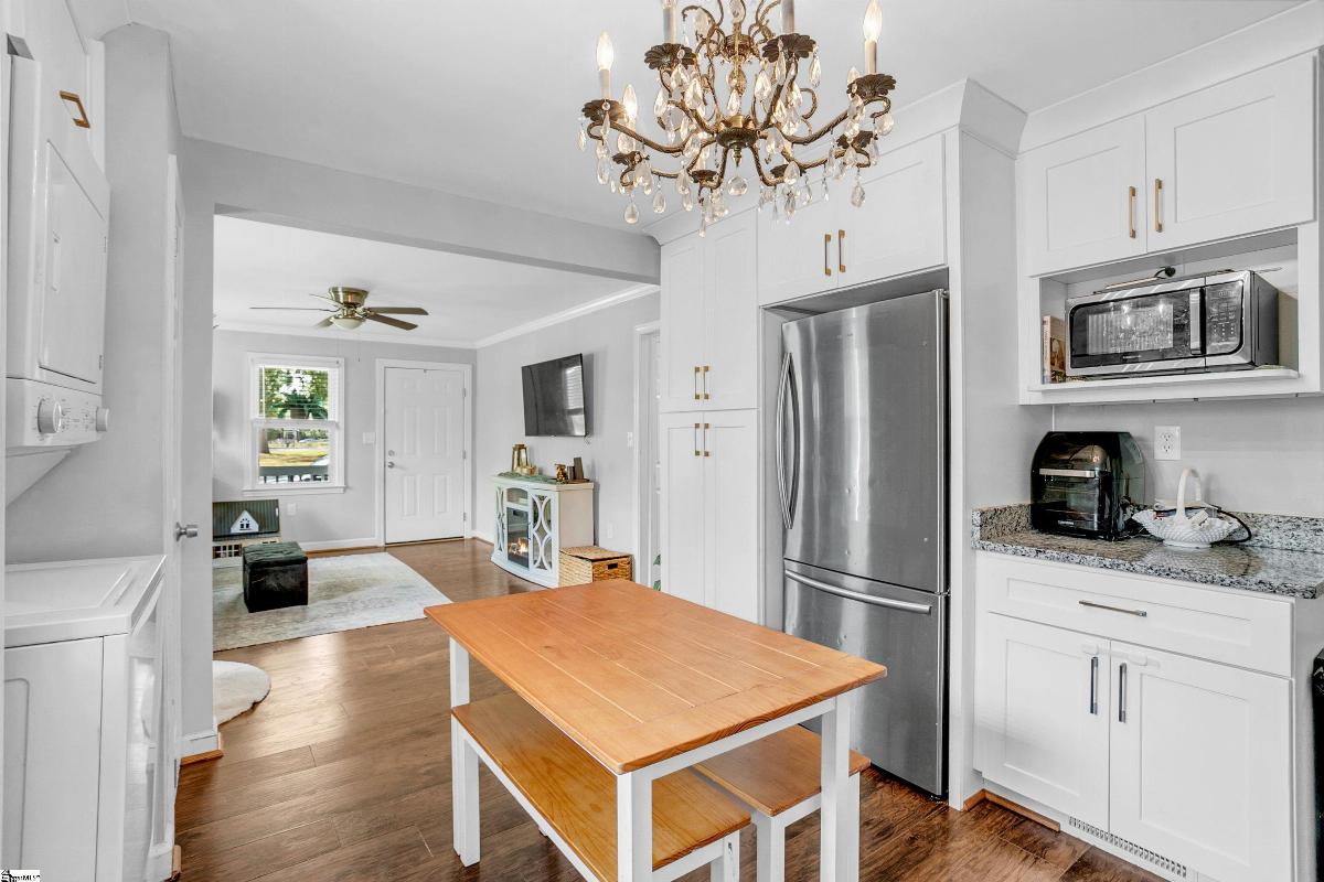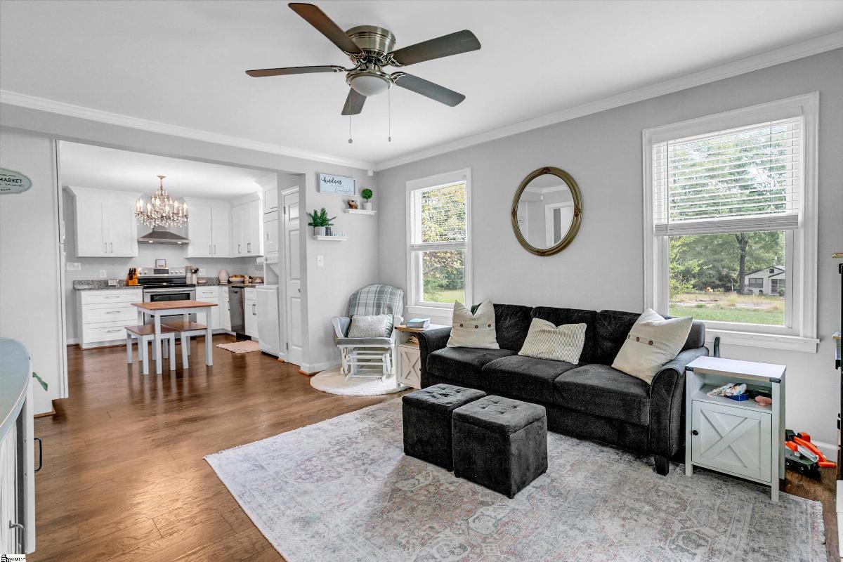 Charming bungalow with modern updates and classic character! This inviting home features an open living and kitchen area, perfect for everyday living and entertaining. Thoughtful improvements include a new metal roof, updated front and back steps with a back banister, a new concrete back patio, fresh paint on the front porch and interior walls, and an HVAC system installed by previous owners that is less than five years old. The home also includes a newer water heater and newer washer and dryer, adding extra convenience. Enjoy a spacious backyard ideal for gatherings, gardening, or hobbies, and relax on the welcoming front porch while taking in the neighborhood charm. Conveniently located within walking distance to downtown Clinton and just a short drive to downtown Laurens and Presbyterian College. Buyer credit available if under contract by 12/31/25, plus a first-year interest rate buy-down and closing cost credit with preferred lender. Contact listing agent for lender details.