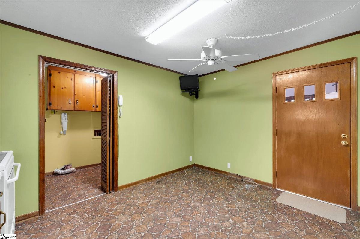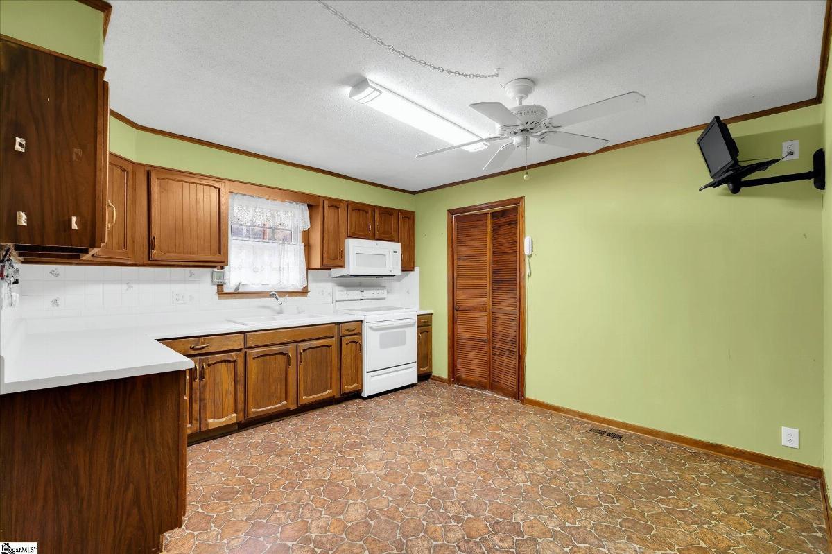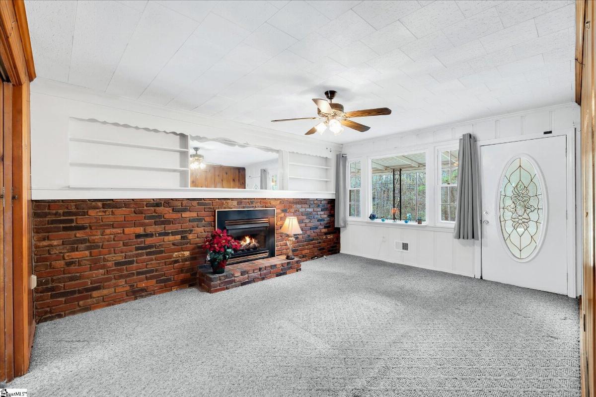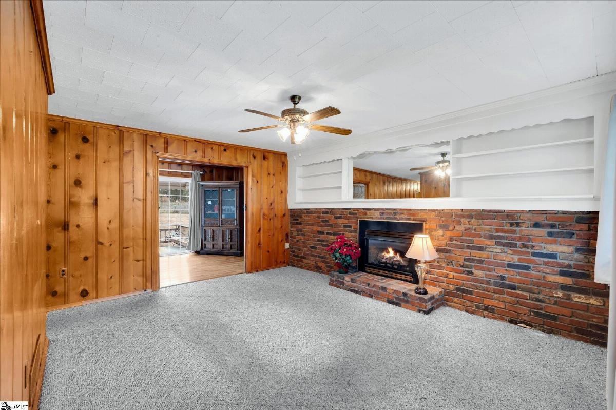 Welcome to 633 Whitmire Highway, a well-maintained brick home situated on a spacious corner lot in the peaceful rural town of Joanna. Enjoy a quiet setting while still benefiting from convenient proximity to I-26, providing easy access to Columbia, Spartanburg, and Greenville. This inviting home features a fenced yard ideal for pets, gardening, or outdoor entertaining, along with an outbuilding equipped with electricity—perfect for a workshop, storage, or future projects with endless possibilities. Relax or entertain on the patio and appreciate the thoughtful interior touches throughout. Inside, the living room showcases custom built-in shelving and cozy gas log fireplace. The eat-in kitchen offers comfortable dining space and is complemented by a versatile utility room that also serves as a walk-in pantry. The home includes three bedrooms and two full baths, with one bedroom easily adaptable as a den, home office, or flex space to suit your needs. Combining comfort, functionality, and location, this property offers a wonderful opportunity for peaceful living with convenient access to major Upstate destinations.